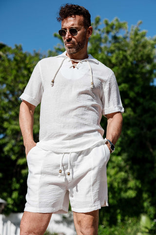 Men's Beach Resort Wear Lounge Short Set with Drawstring Shirt