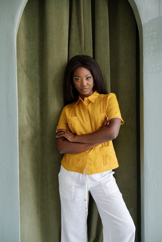 Mojito Women's Off-Shoulder Guayabera Top – Linen Blend Button Down