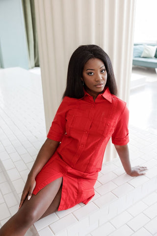Mojito Women's Classic Guayabera Dress Linen Blend Short Sleeve Button Down