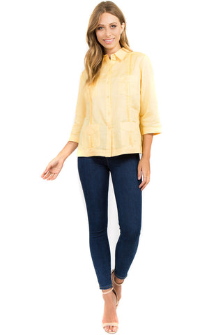 Mojito Women's Premium Linen Guayabera Shirt – 3/4 Sleeve Traditional 4-Pocket Style