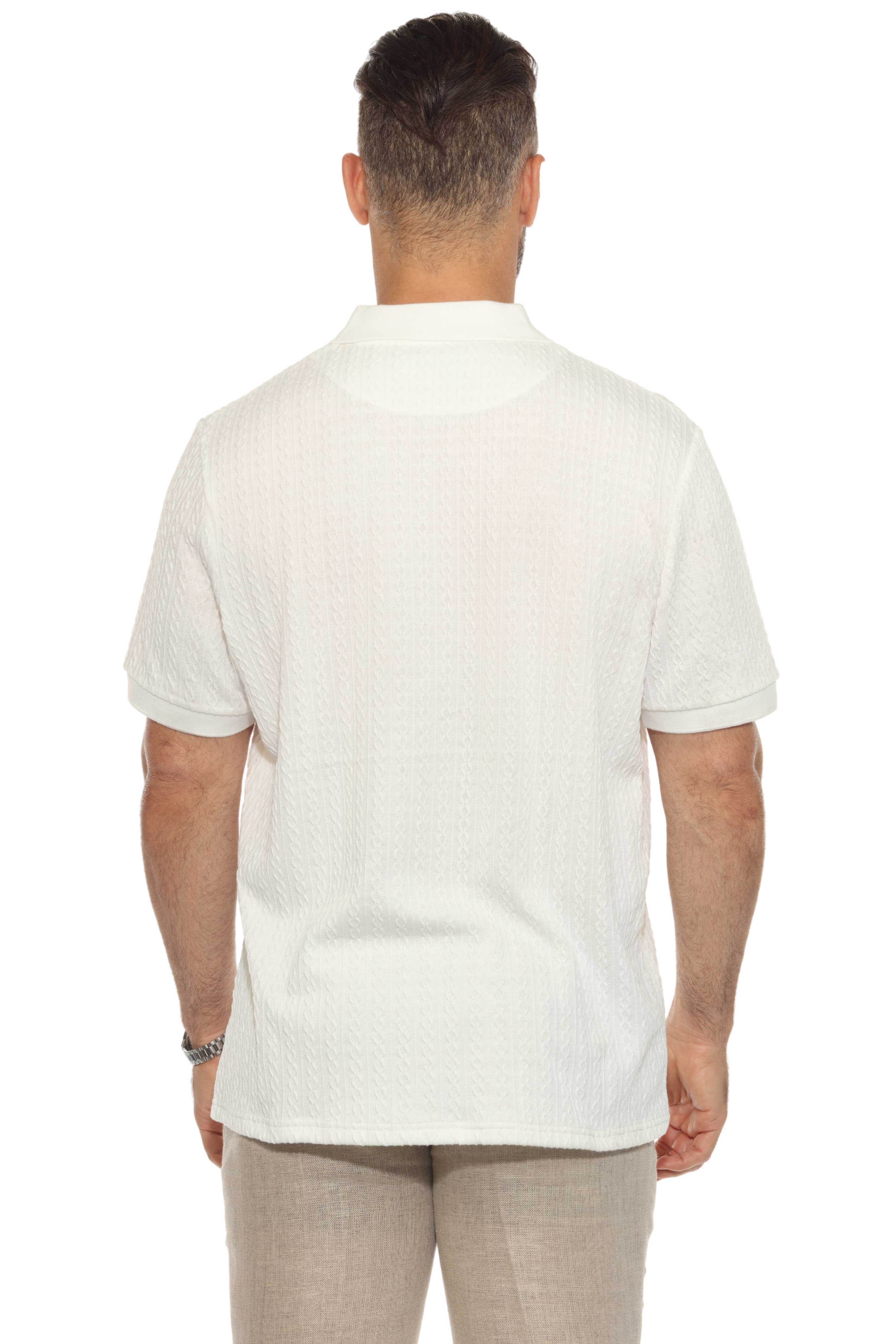 Crafted for comfort, this polo shirt features a cable knit pattern fabric that wicks moisture and stretches with ease. The modern design pairs effortlessly with jeans or chinos for an elevated casual look.
