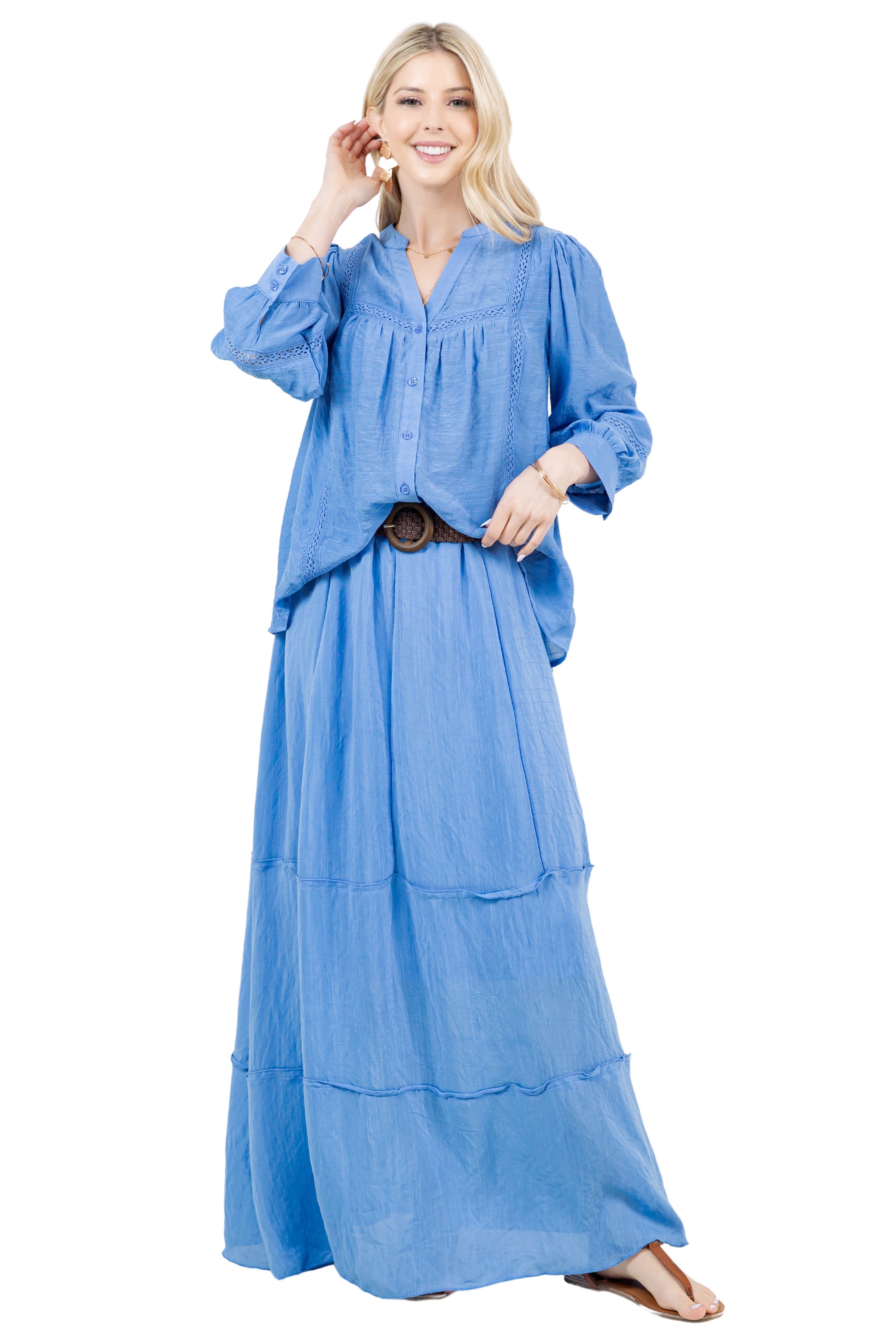 • Airy Lightweight Fabric: Soft and breathable, the rayon-poly blend offers a comfortable drape and delicate texture that moves with you.