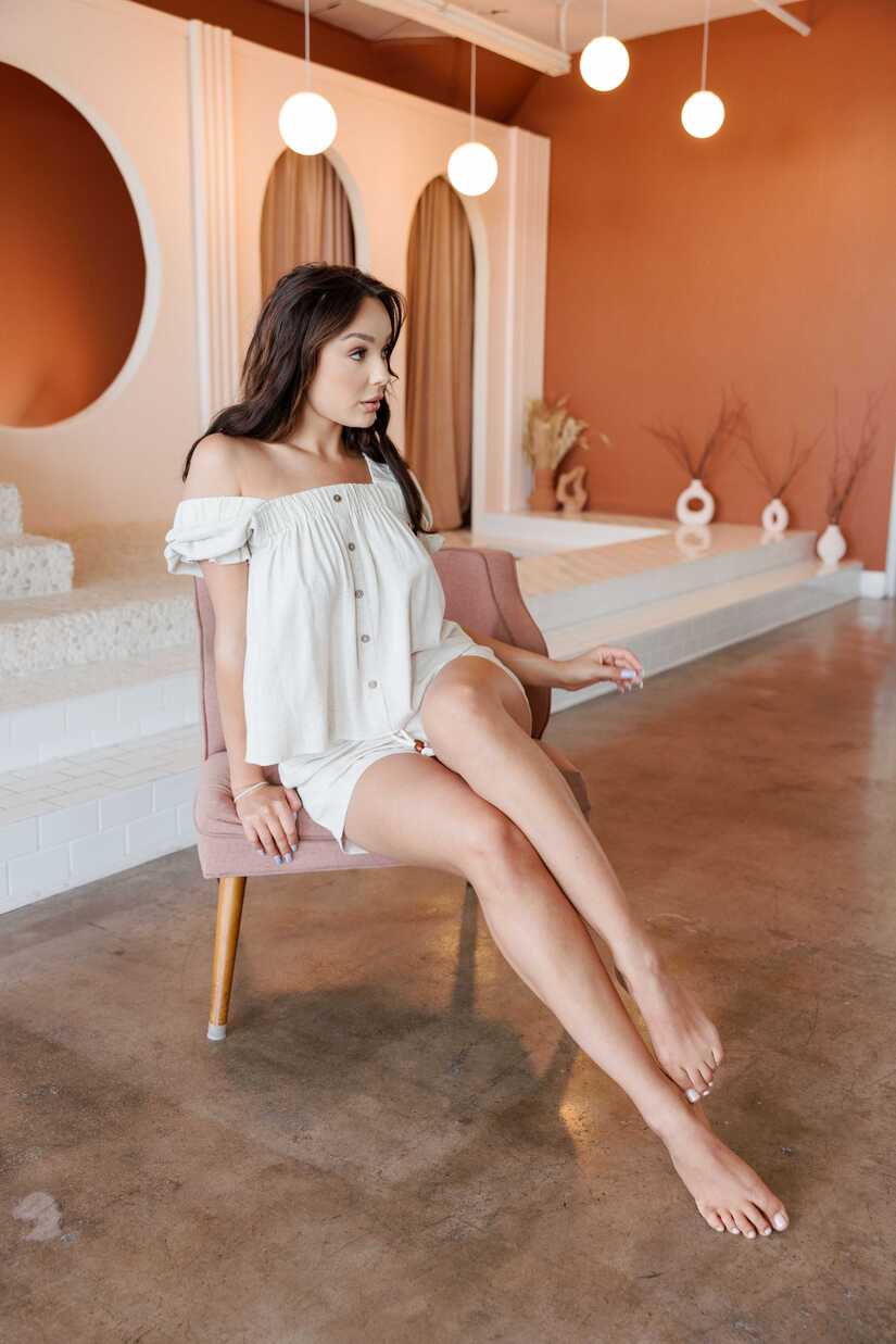 This charming blouse offers an airy silhouette with soft feminine detailing, perfect for sunshine-filled days. Made from a breathable rayon-linen blend, it features a smocked neckline, delicate ruffled puff sleeves, and a relaxed fit for effortless style. Wooden-look buttons down the front add a natural, rustic finish.