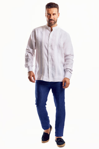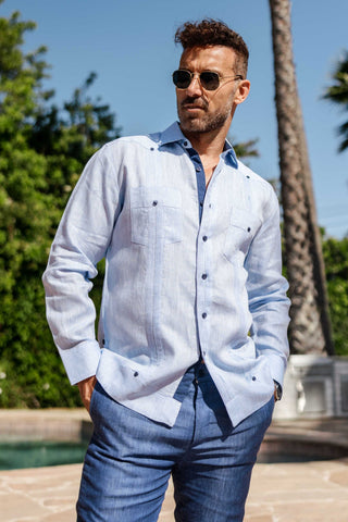 Mojito Men's 100% Linen Guayabera Chacabana Shirt Long Sleeve - Heritage Pleats and Artisan Buttons