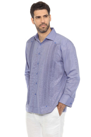Mojito Men's 100% Linen Guayabera Chacabana Shirt Long Sleeve - Geometric Embroidery