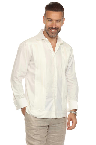 Men's Cotton Blend Guayabera Chacabana Shirt Long Sleeve with French Cuff and Pleated Trim