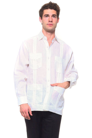 Mojito Men's 100% Linen Four-Pocket Long Sleeve Guayabera Shirt