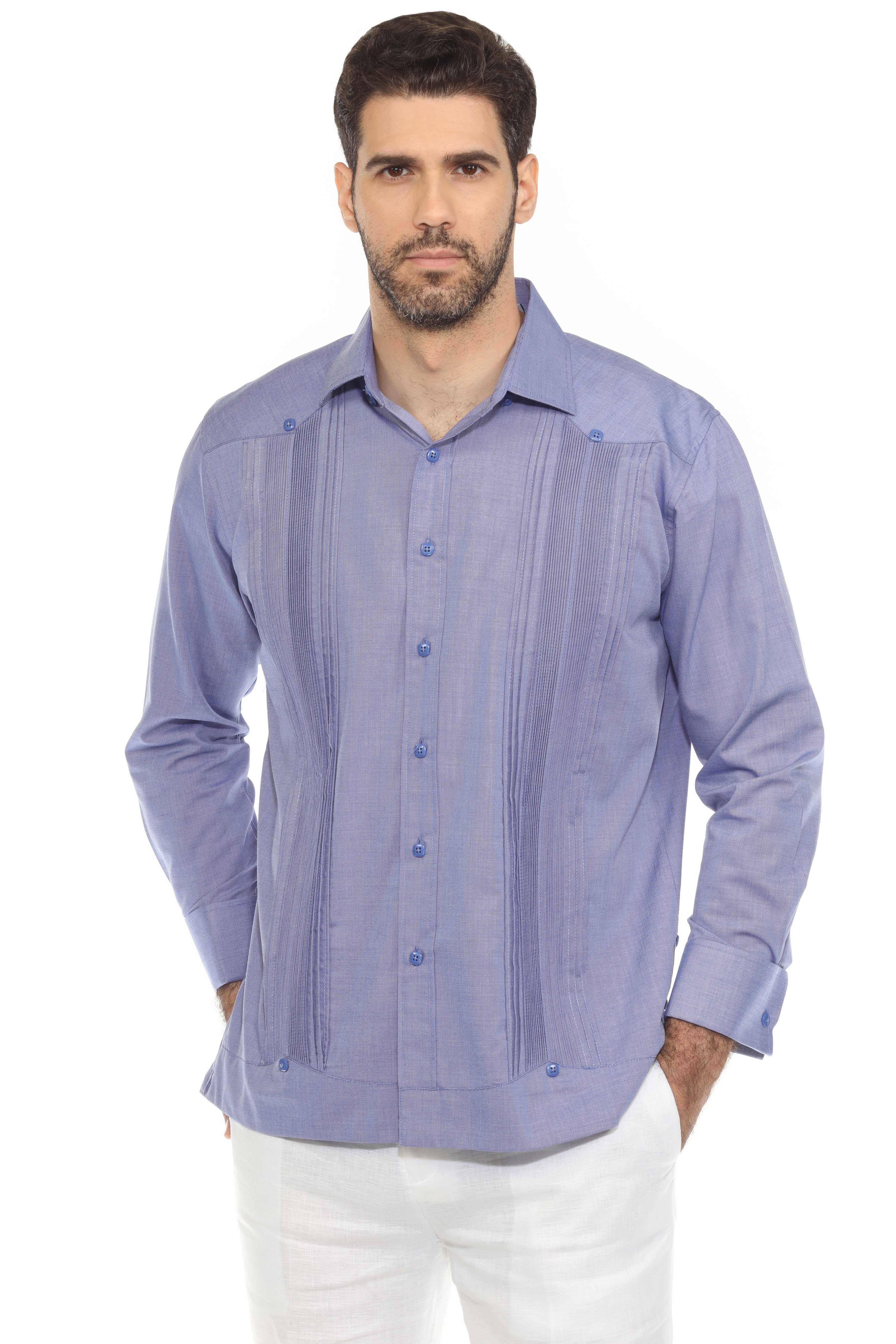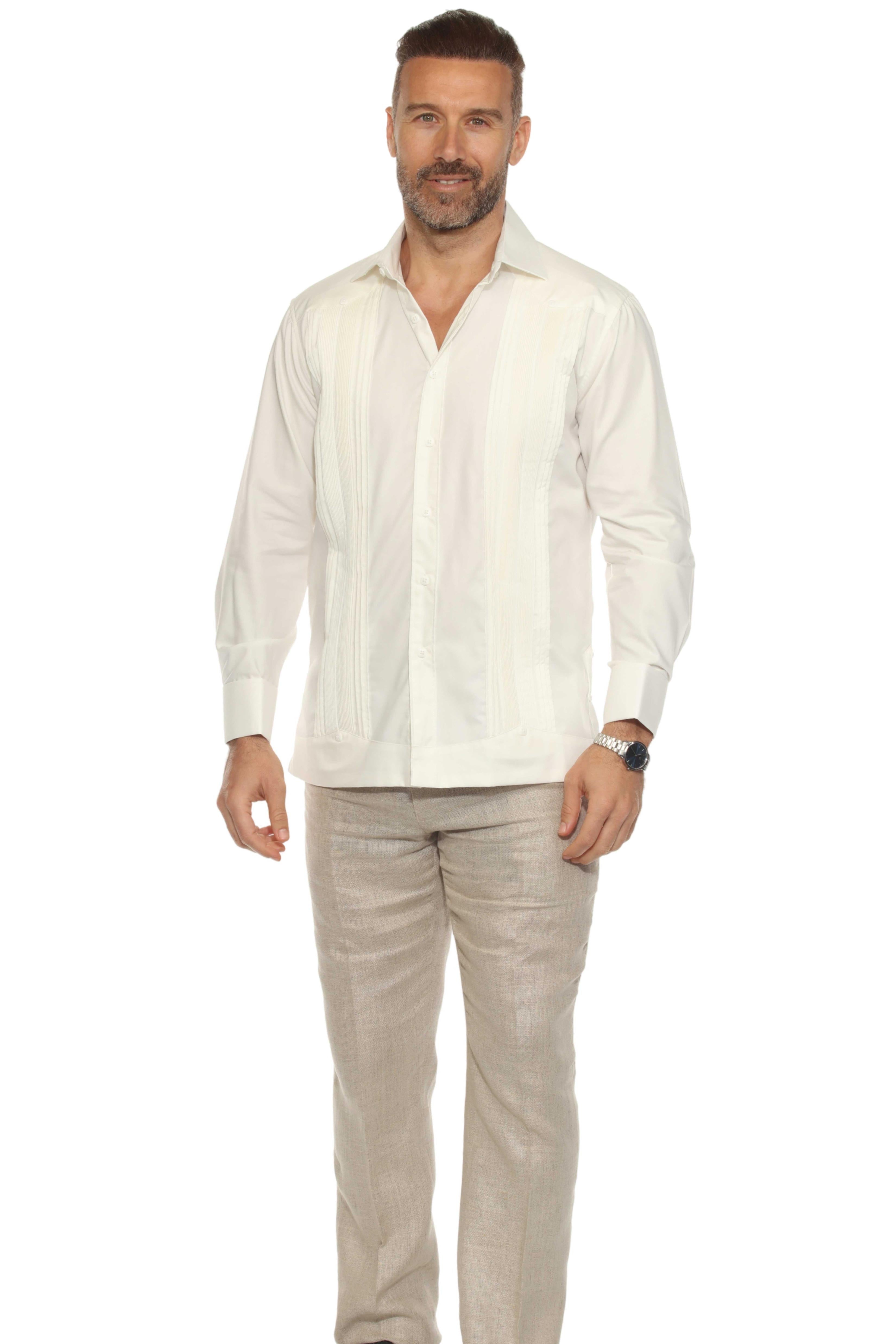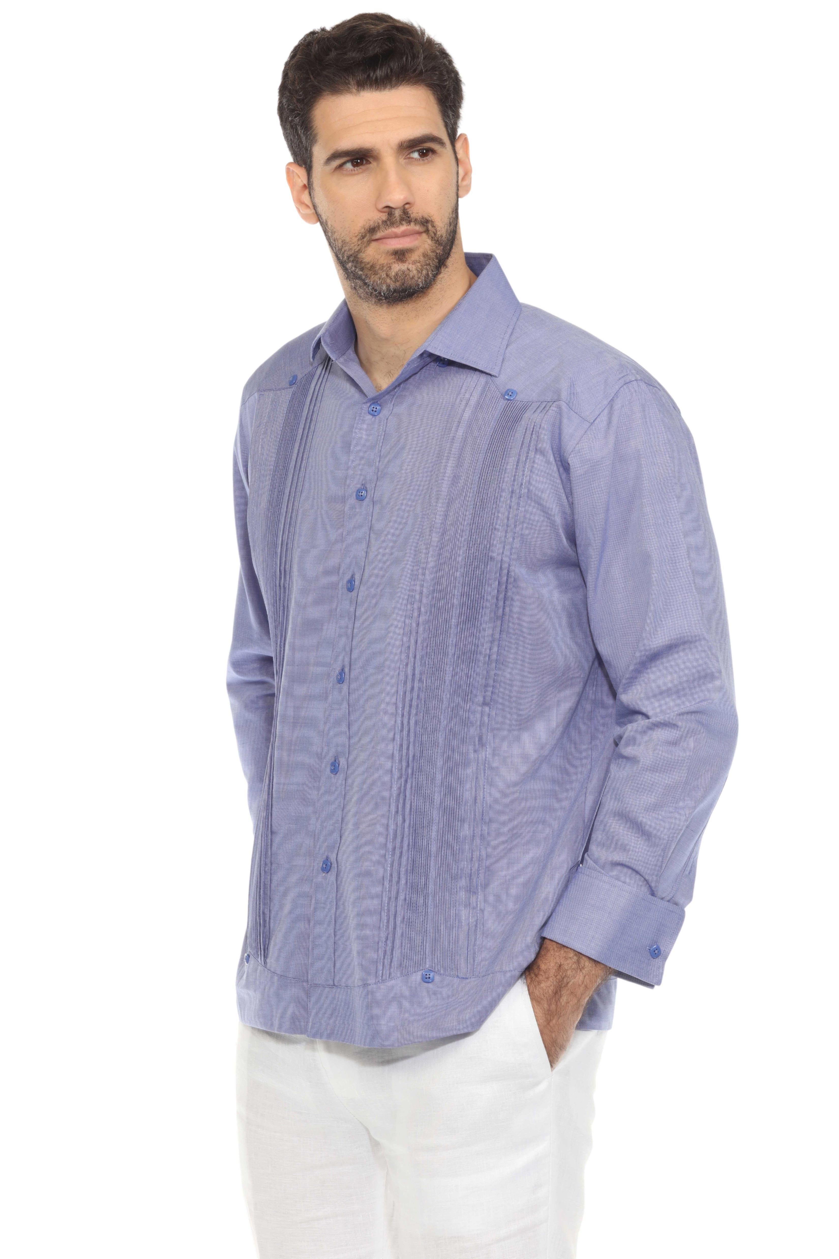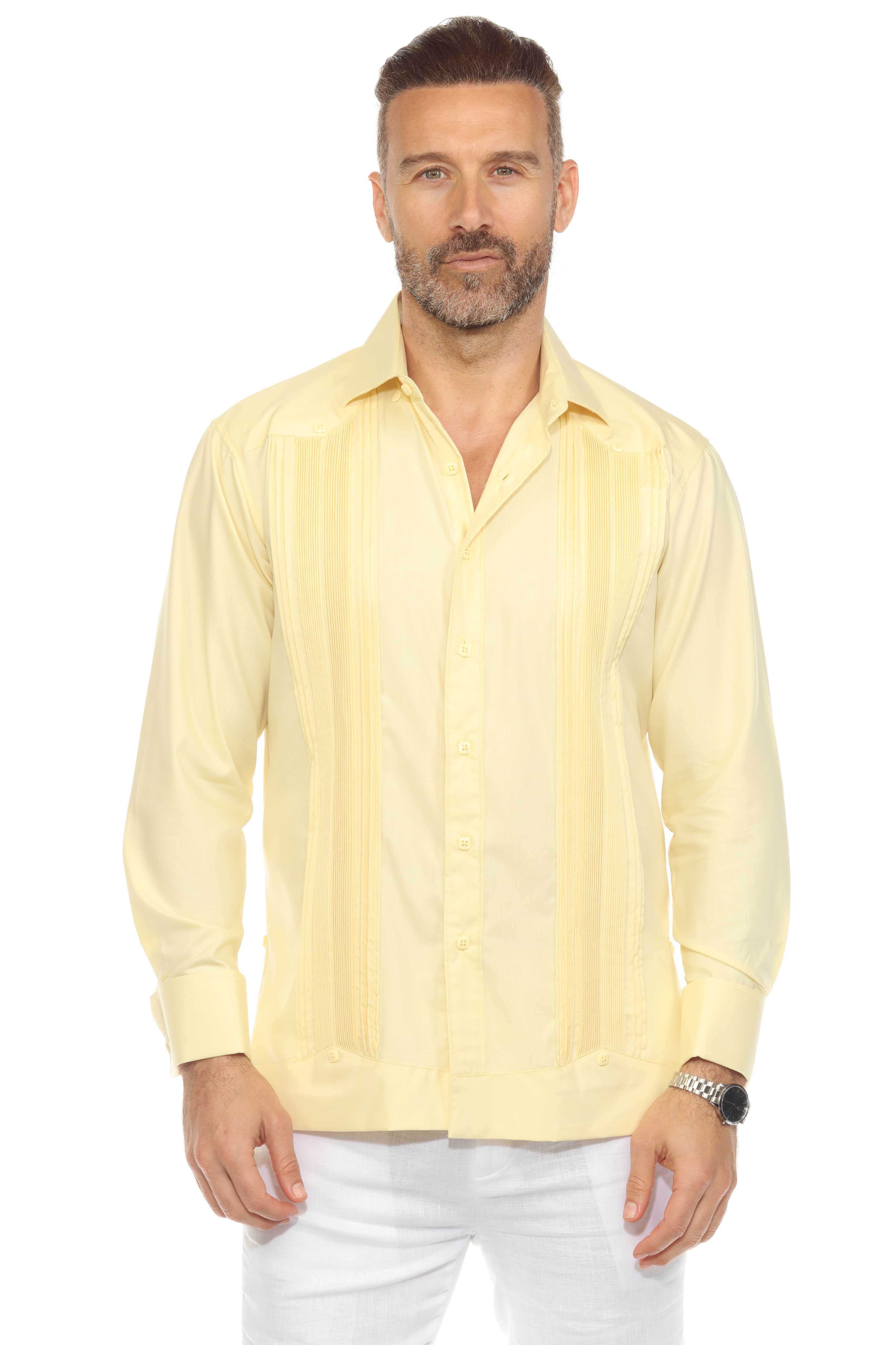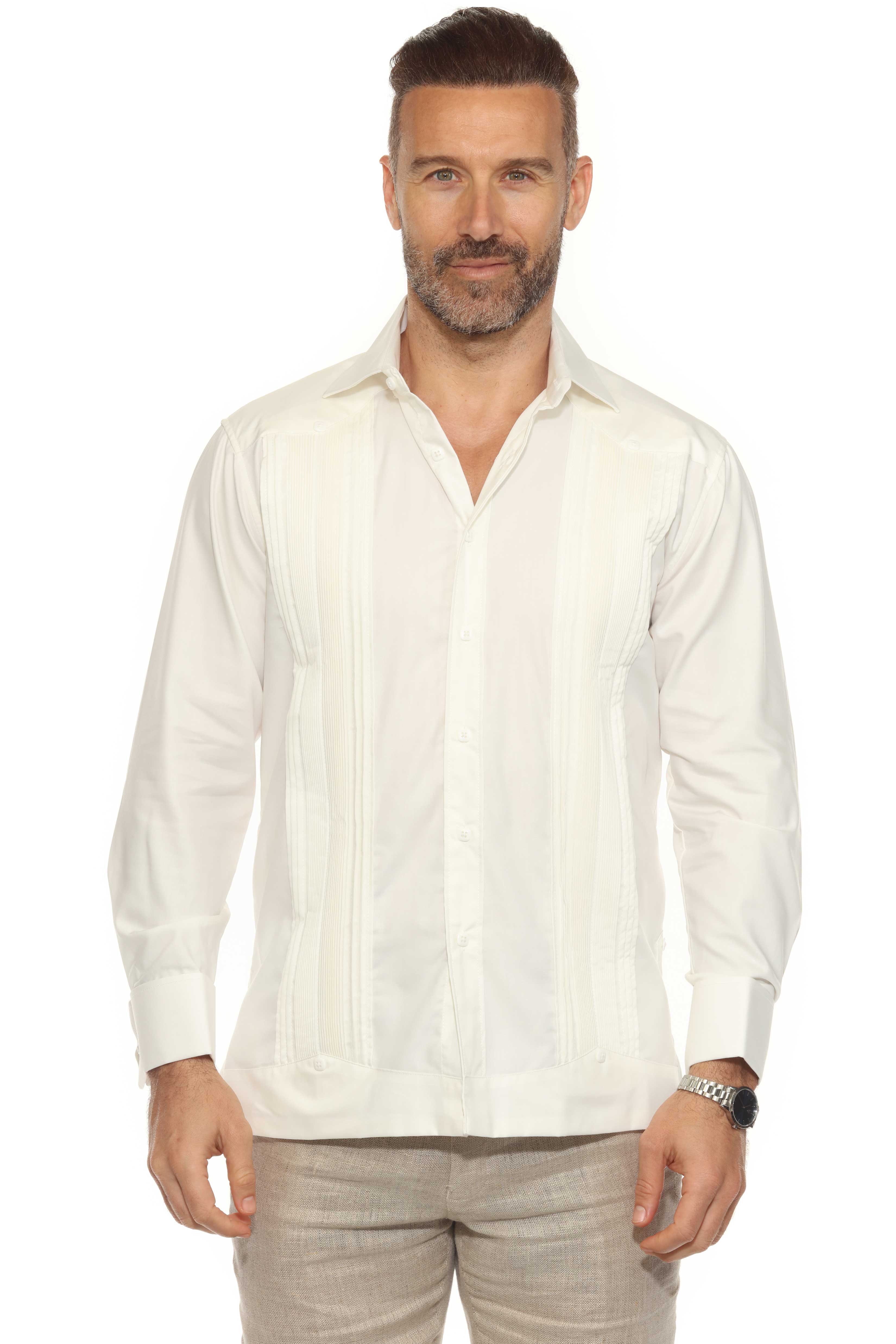 Men's Cotton Blend Guayabera Chacabana Shirt Long Sleeve with French Cuff and Pleated Trim