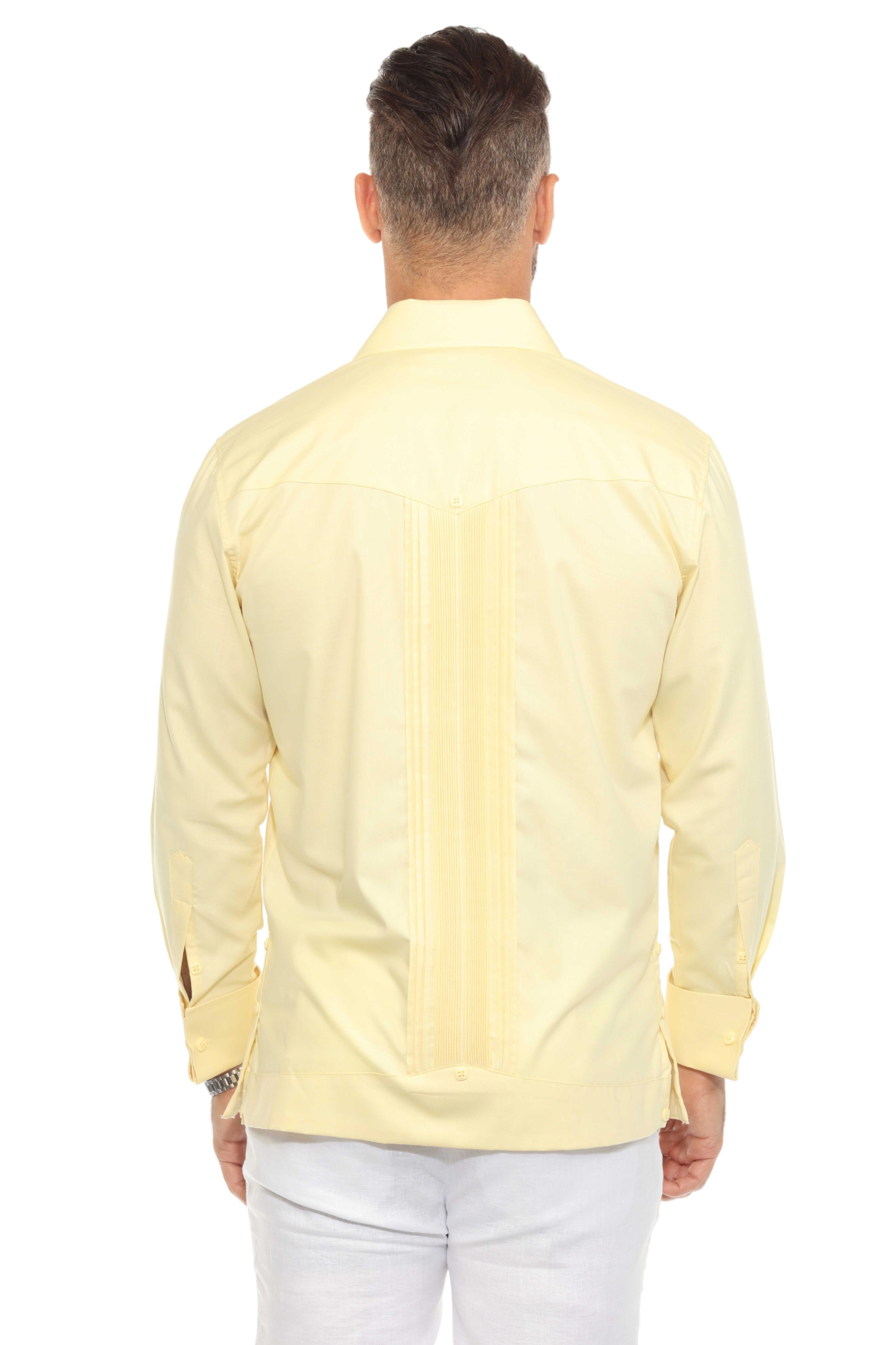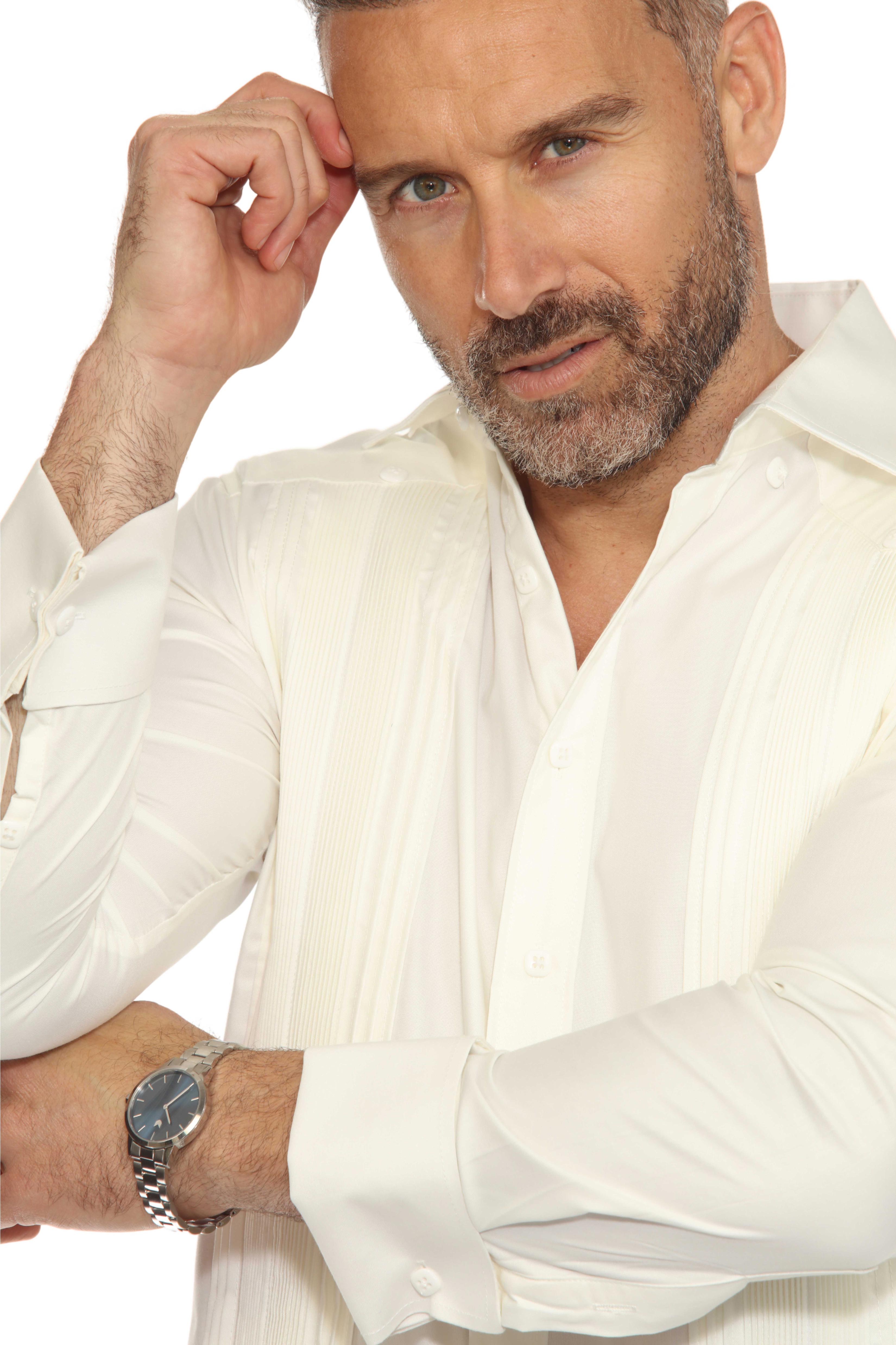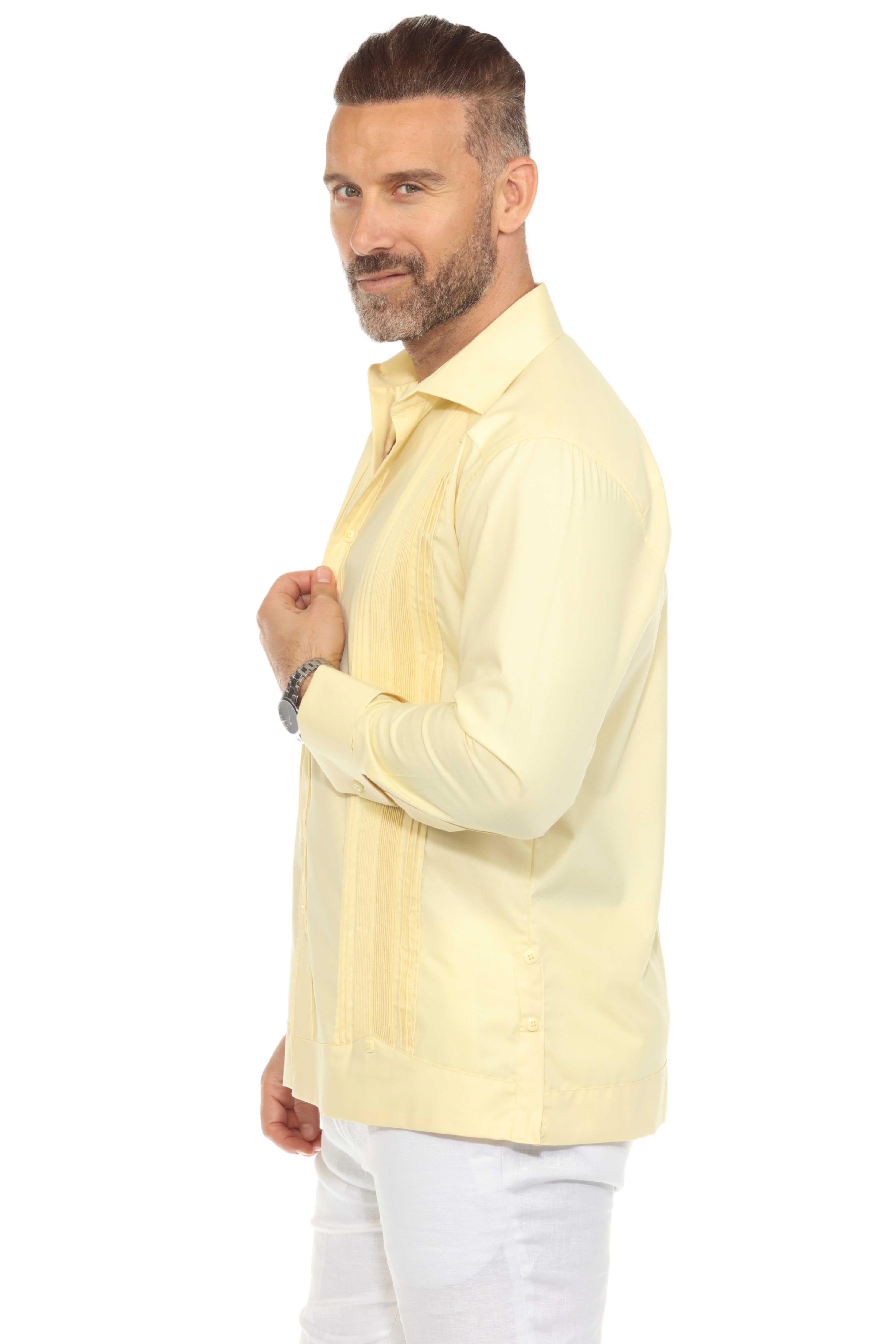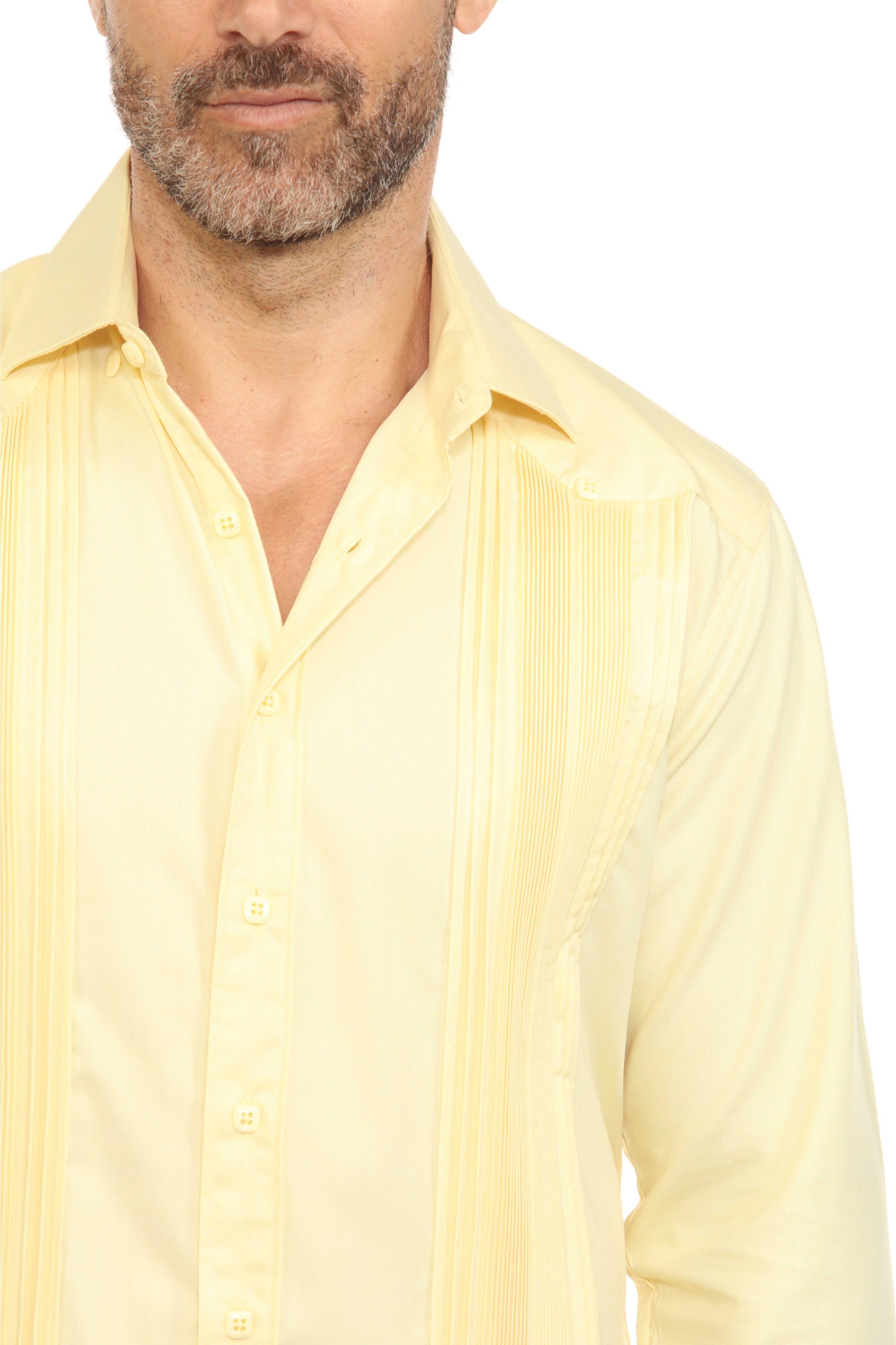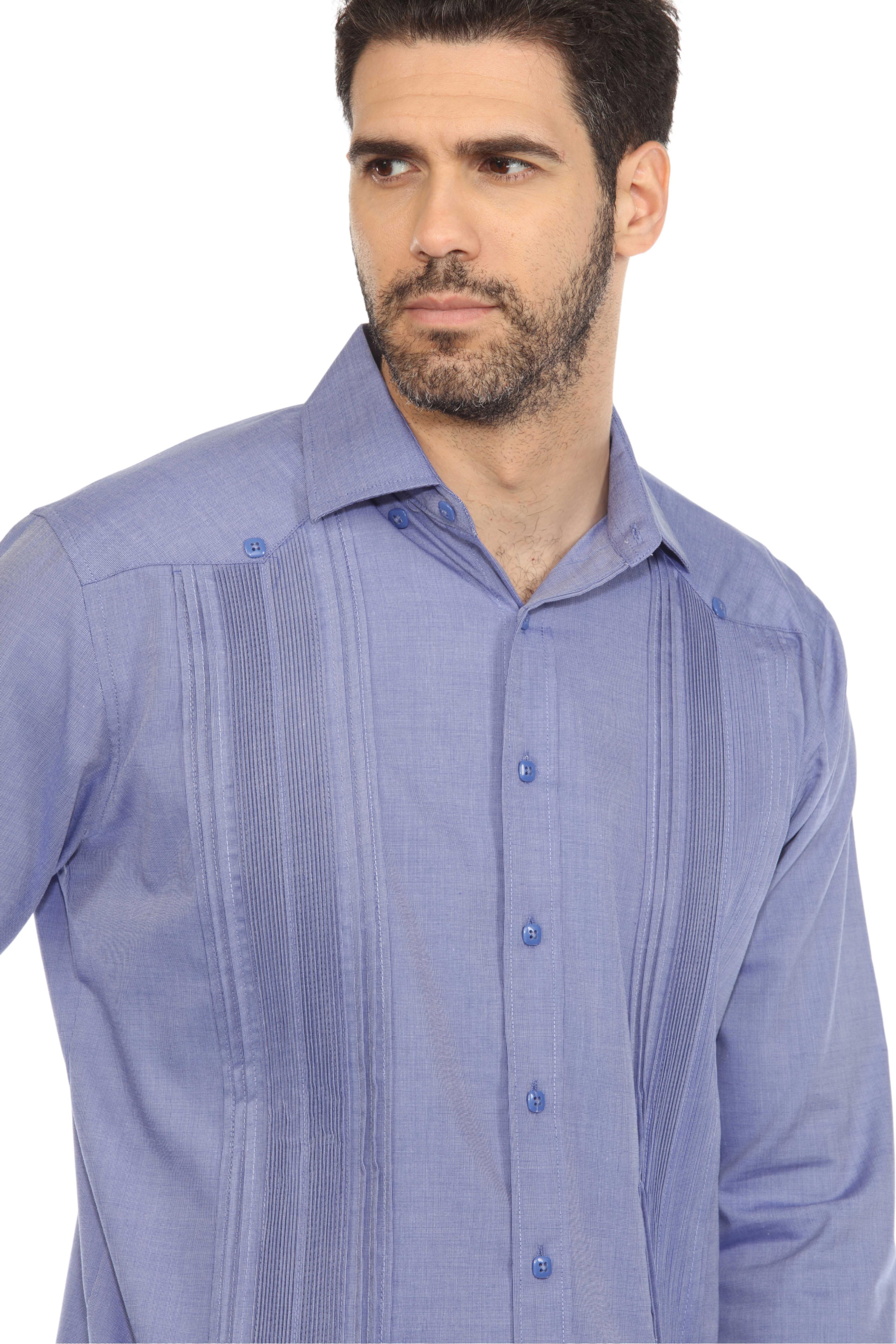 Men's Cotton Blend Guayabera Chacabana Shirt Long Sleeve with French Cuff and Pleated Trim