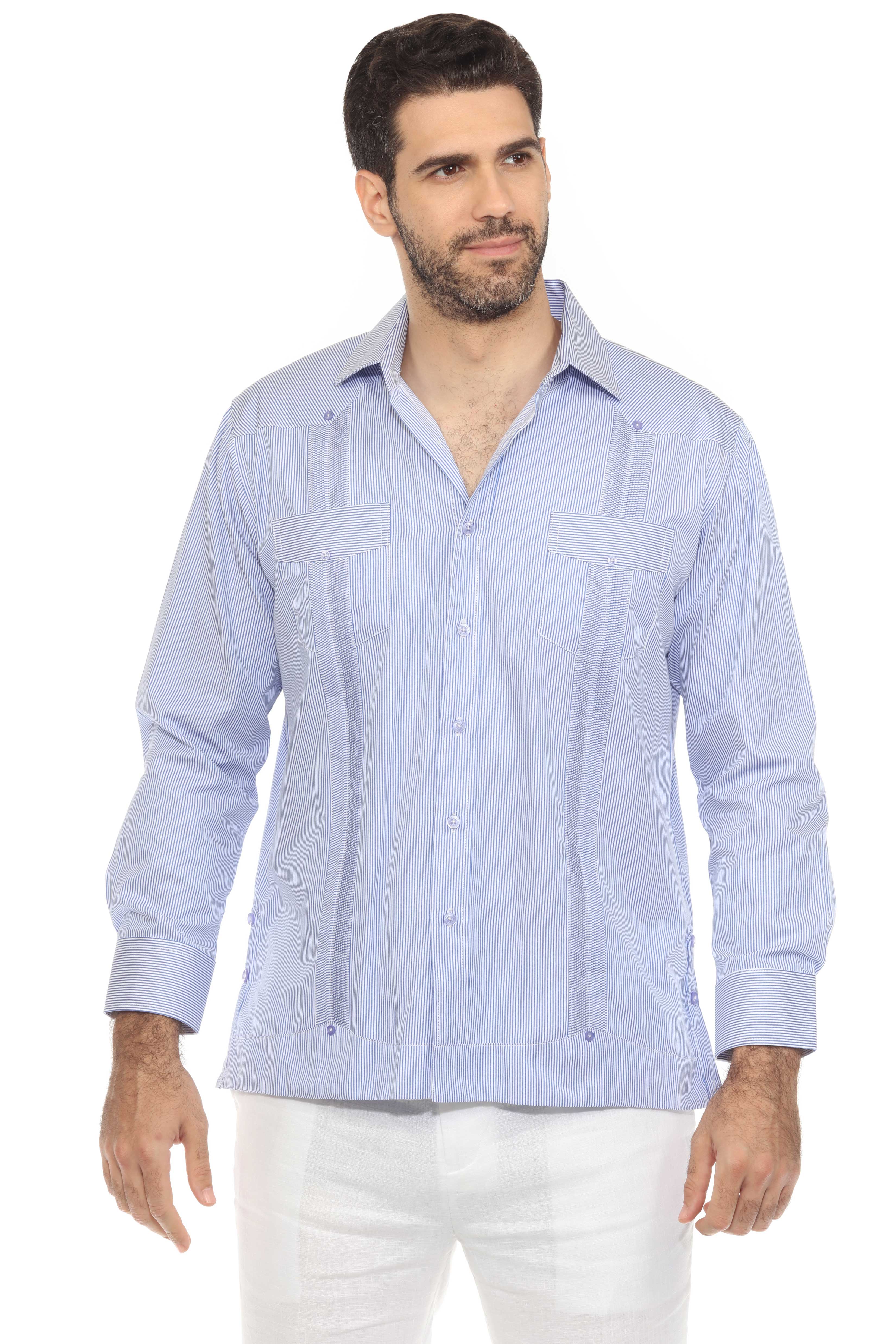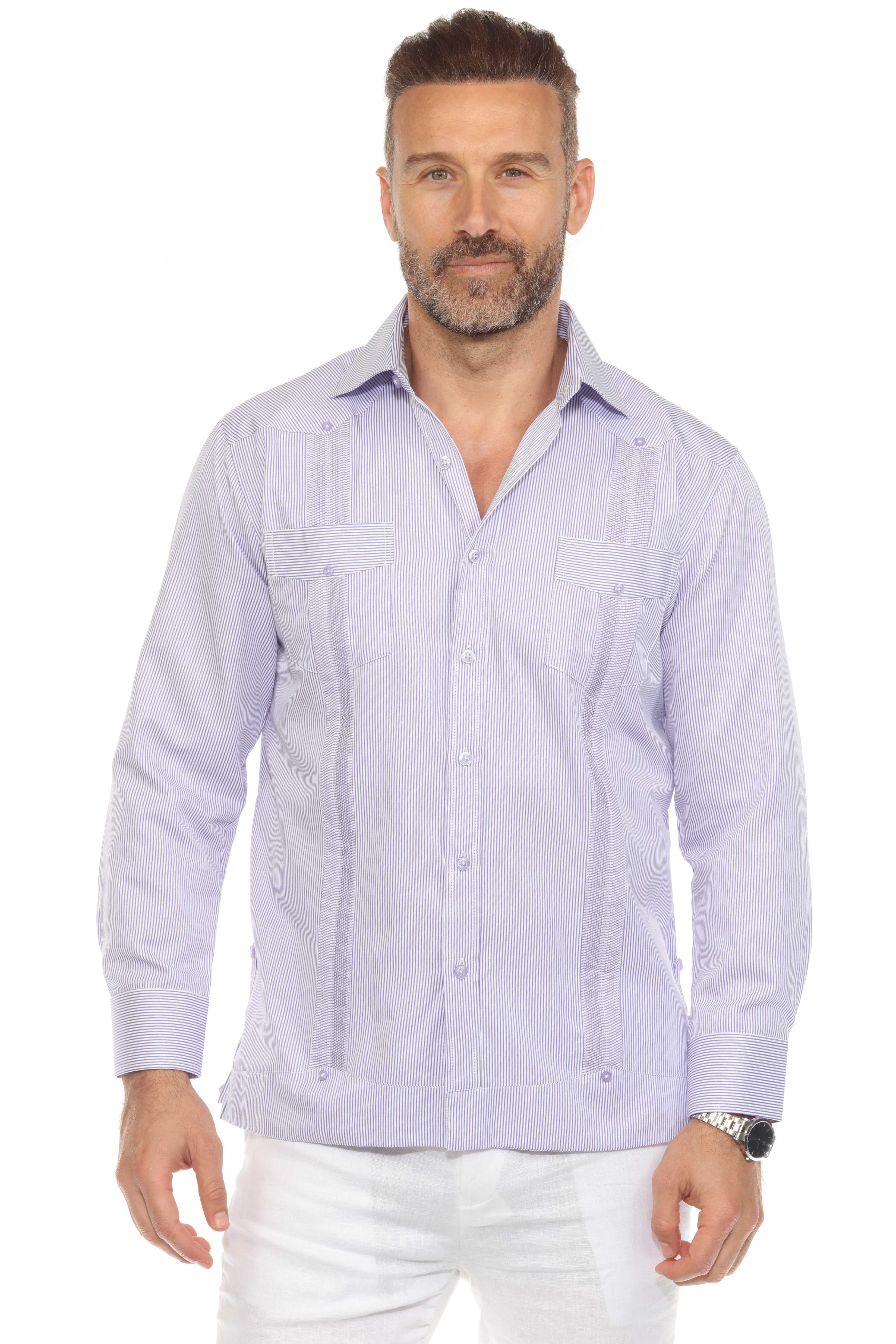Modern Heritage Style – A bold fusion of the classic guayabera and refined Chacabana, upgraded with elegant pinstripes and long sleeves