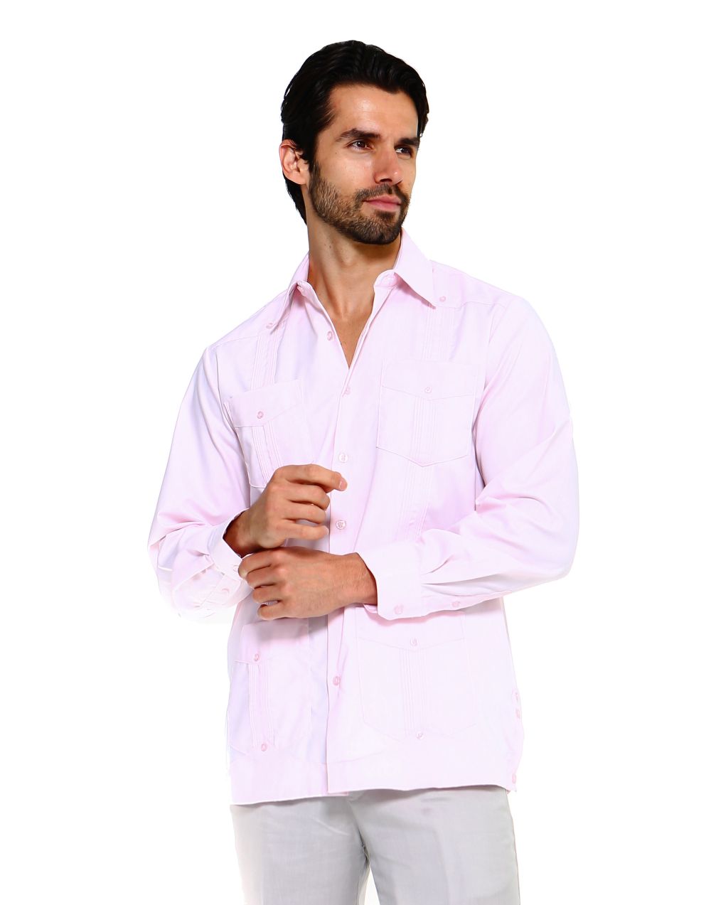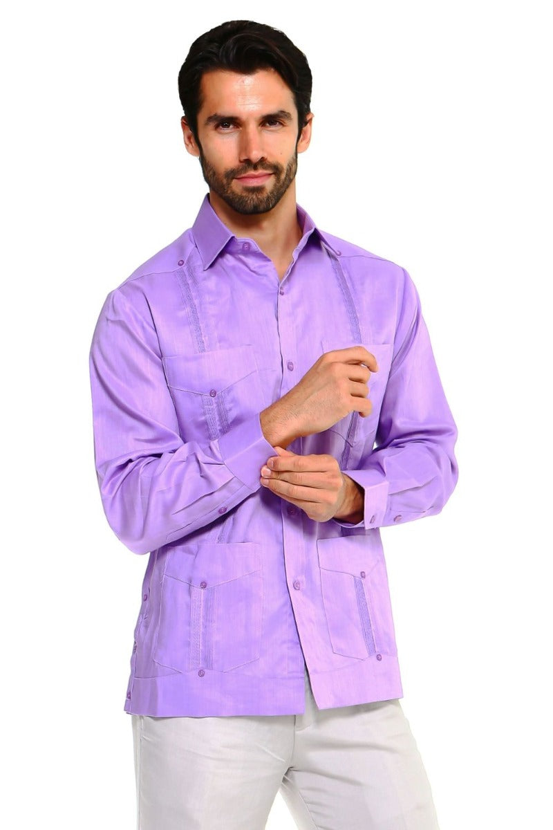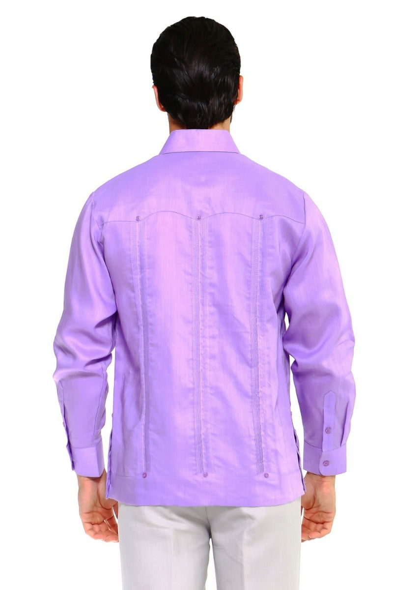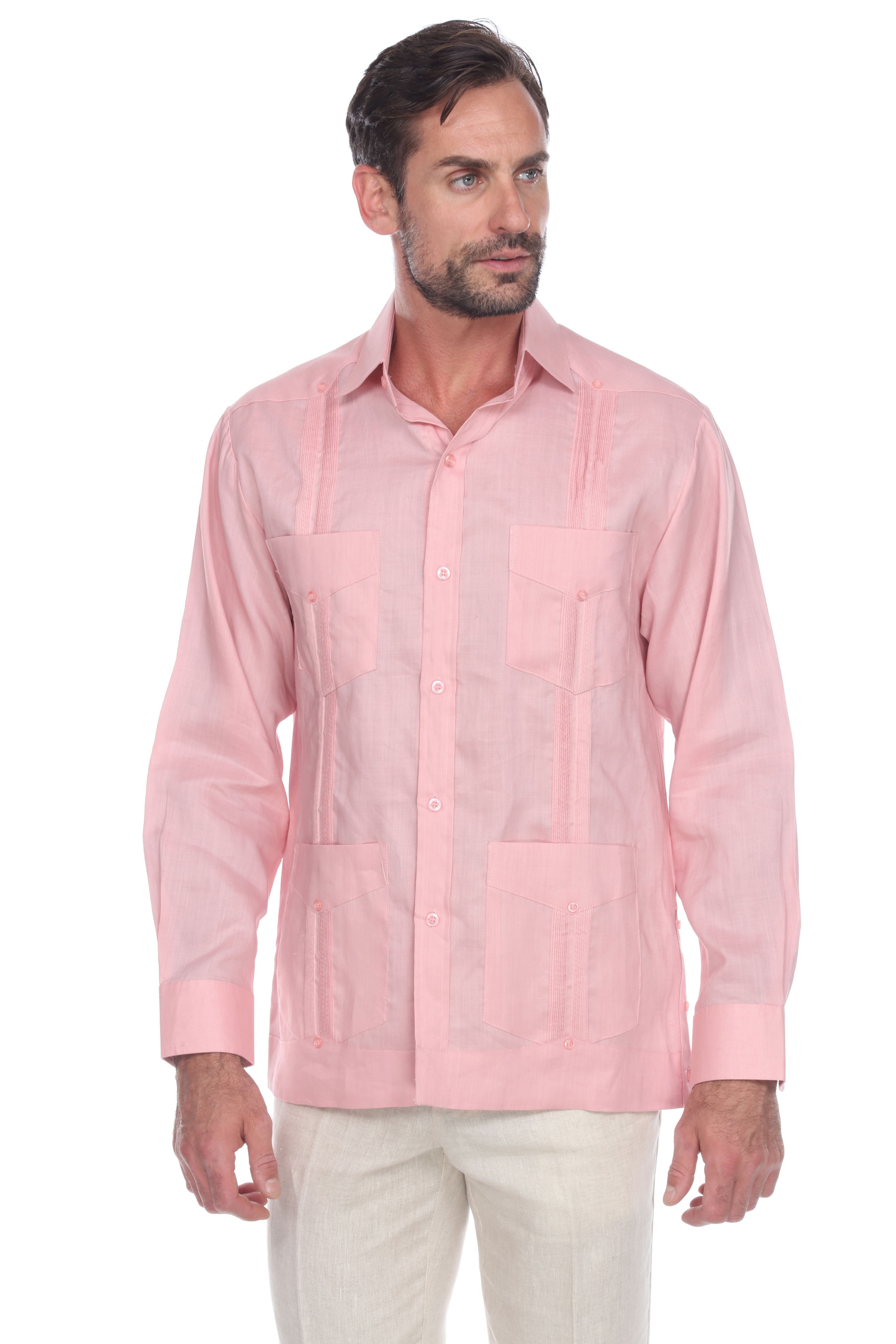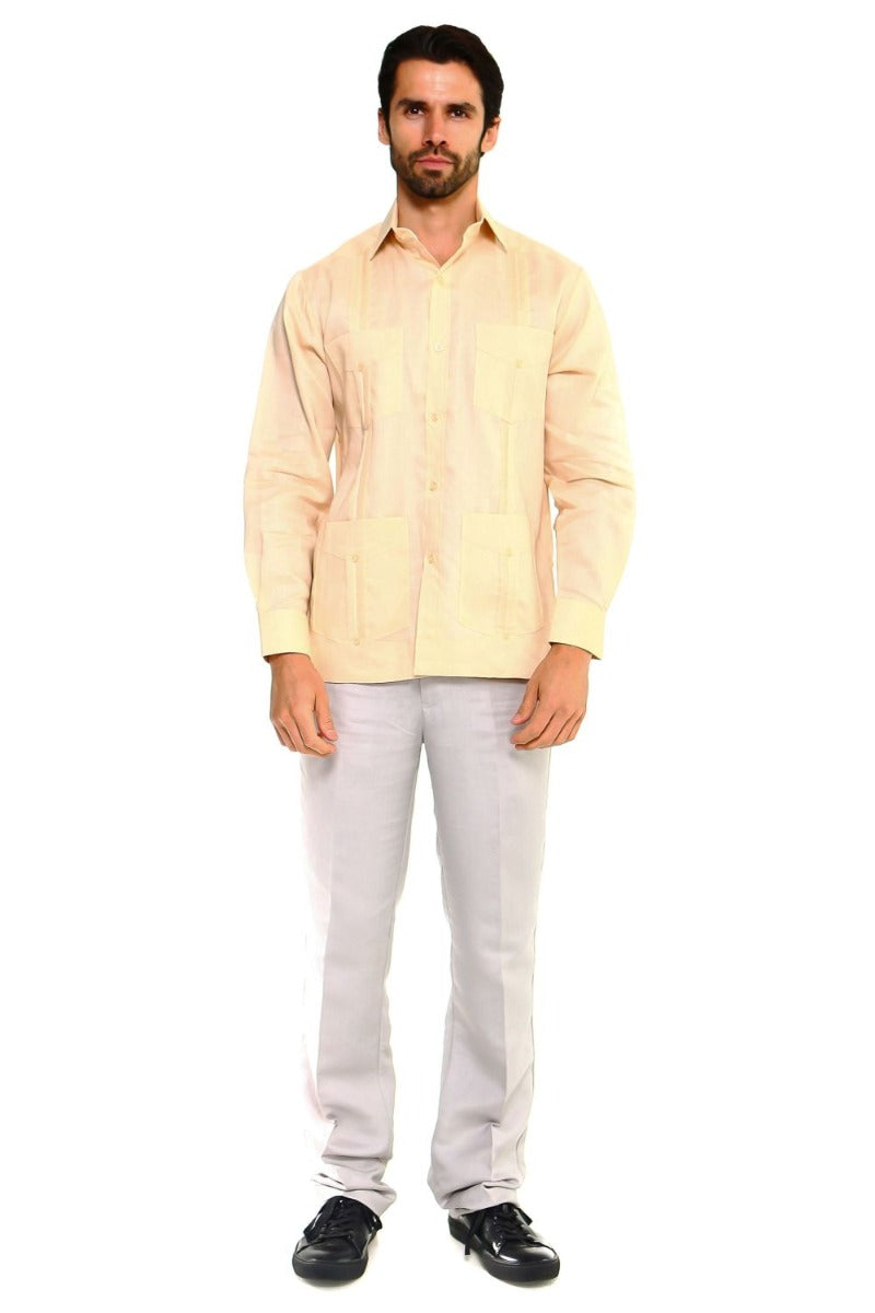 Men's Traditional Guayabera Shirt Premium 100% Linen Long Sleeve 4 Pocket Design Sizes: S-2X