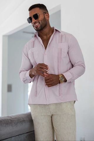 Mojito Men's 100% Linen Guayabera Chacabana Shirt Long Sleeve - Artisan Embroidery