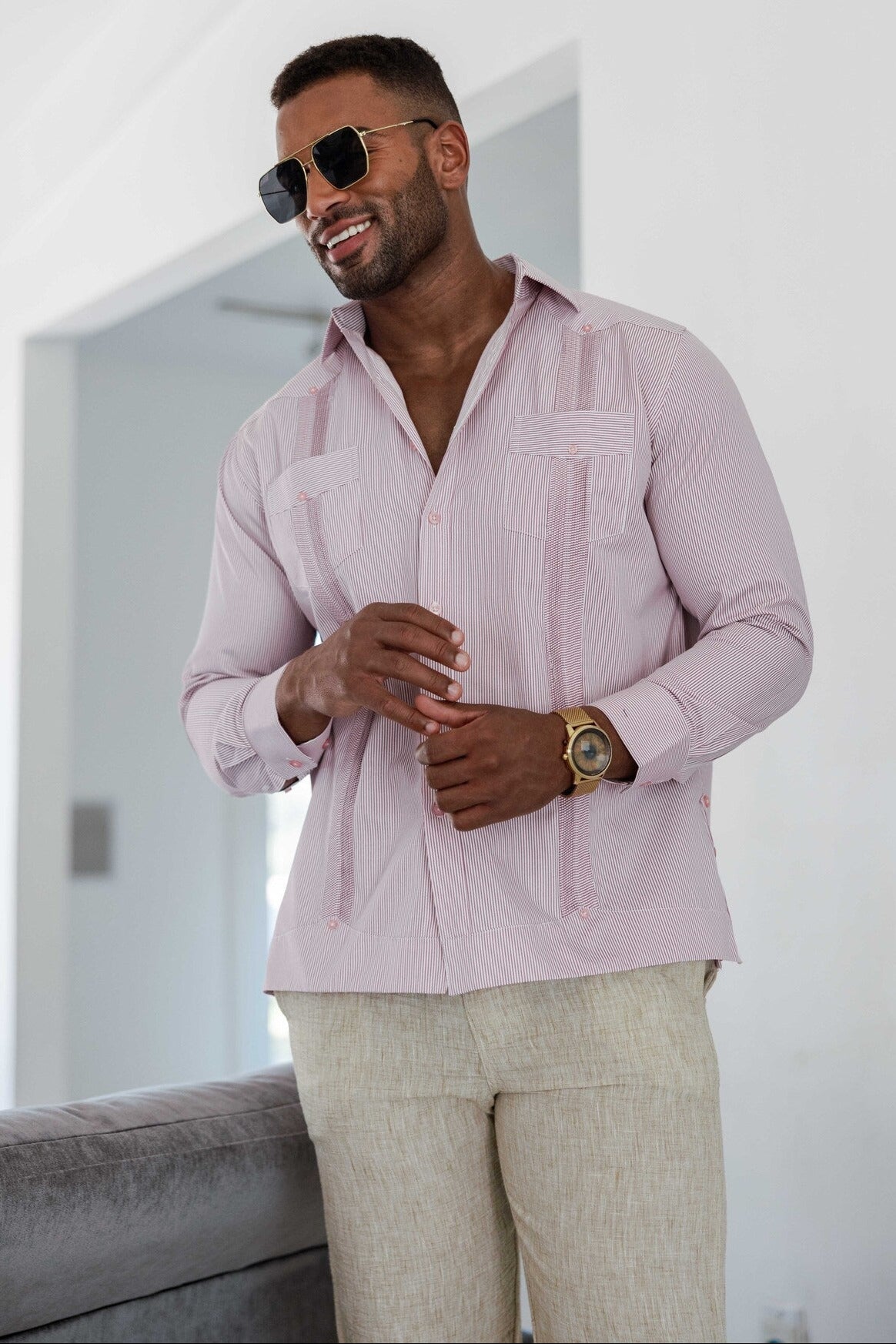 Modern Heritage Style – A bold fusion of the classic guayabera and refined Chacabana, upgraded with elegant pinstripes and long sleeves