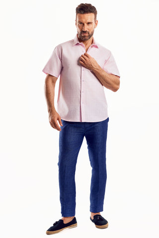 Mojito Men's Cotton Blend Guayabera Chacabana Shirt Short Sleeve in Micro Checker Print