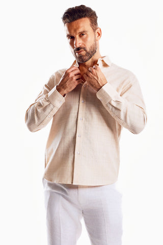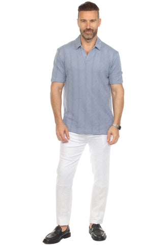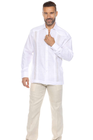 Mojito Men's 100% Linen Resort Shirt Long Sleeve with Pin Tuck and Dual Embroidery Accent