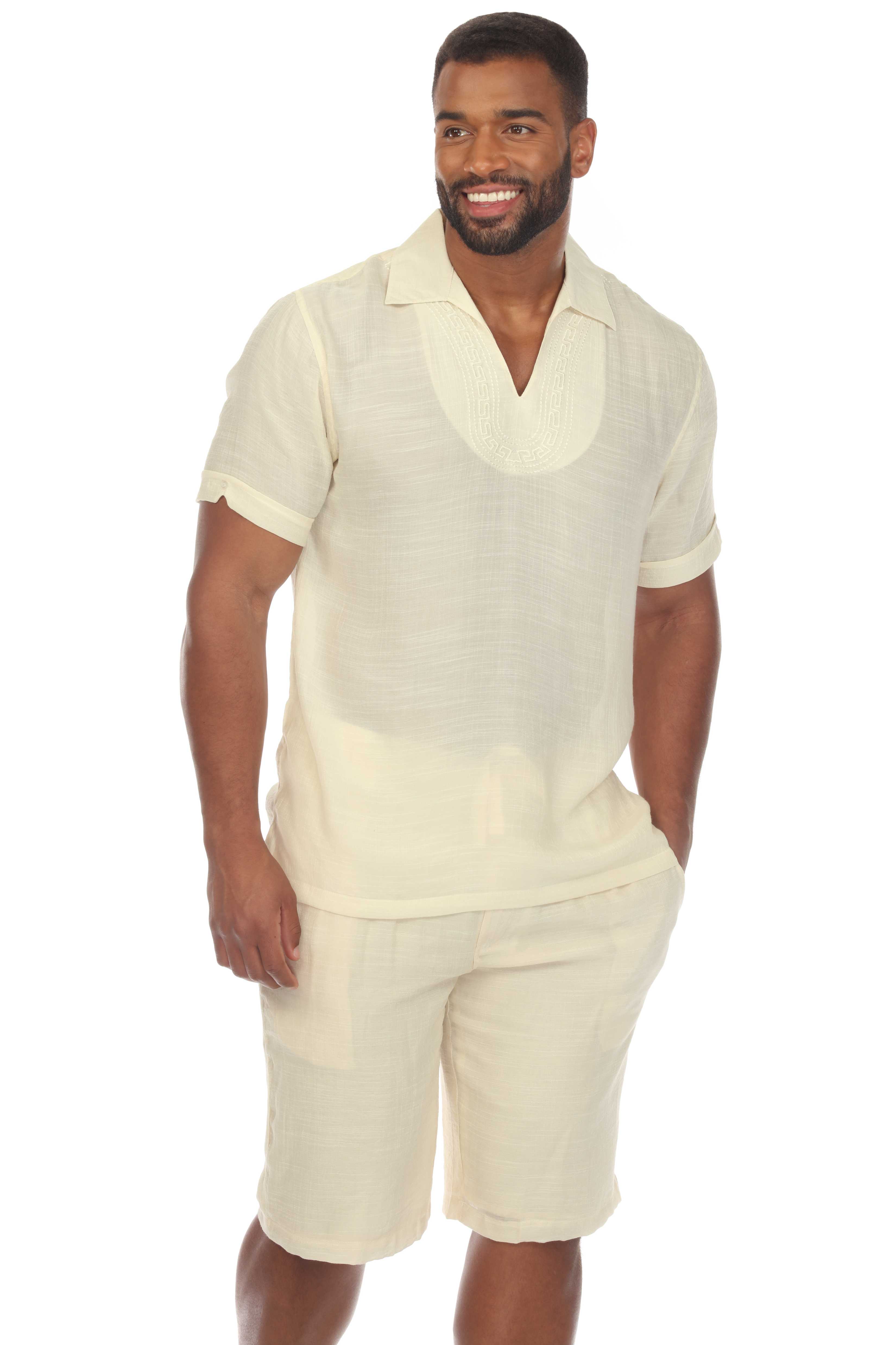 Mojito Men's Beach V-Neck Collar Shirt Short Sleeve with Embroidered Accent