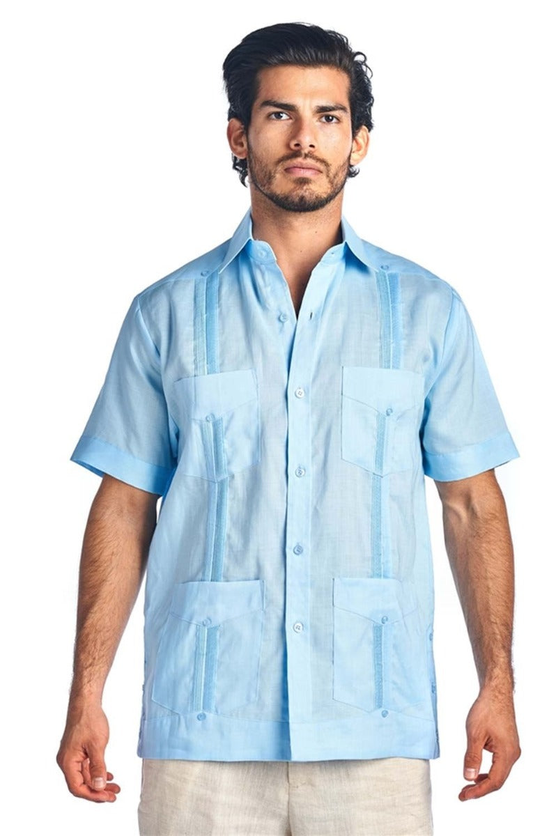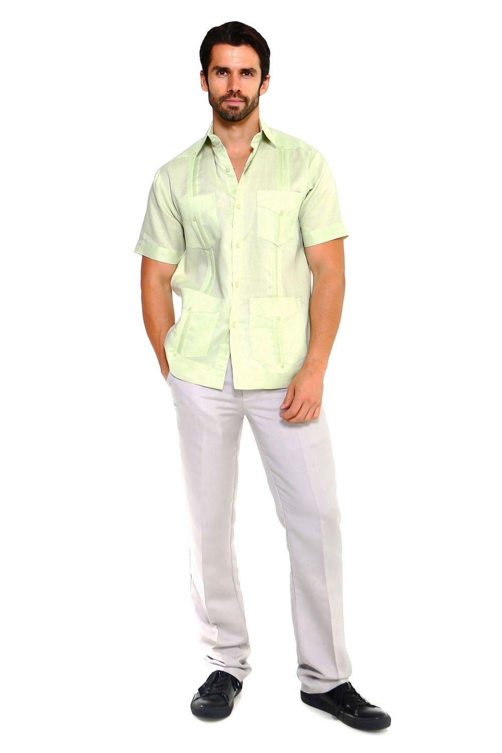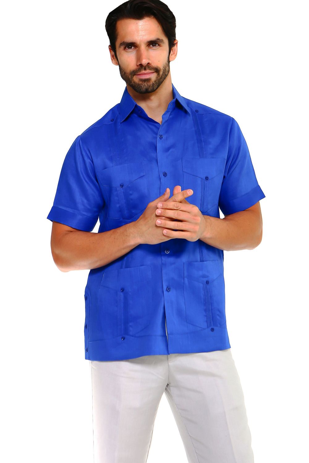 Big Size Men's Traditional Guayabera Shirt Premium 100% Linen Short Sleeve 4 Pocket Design Sizes 3X-8X