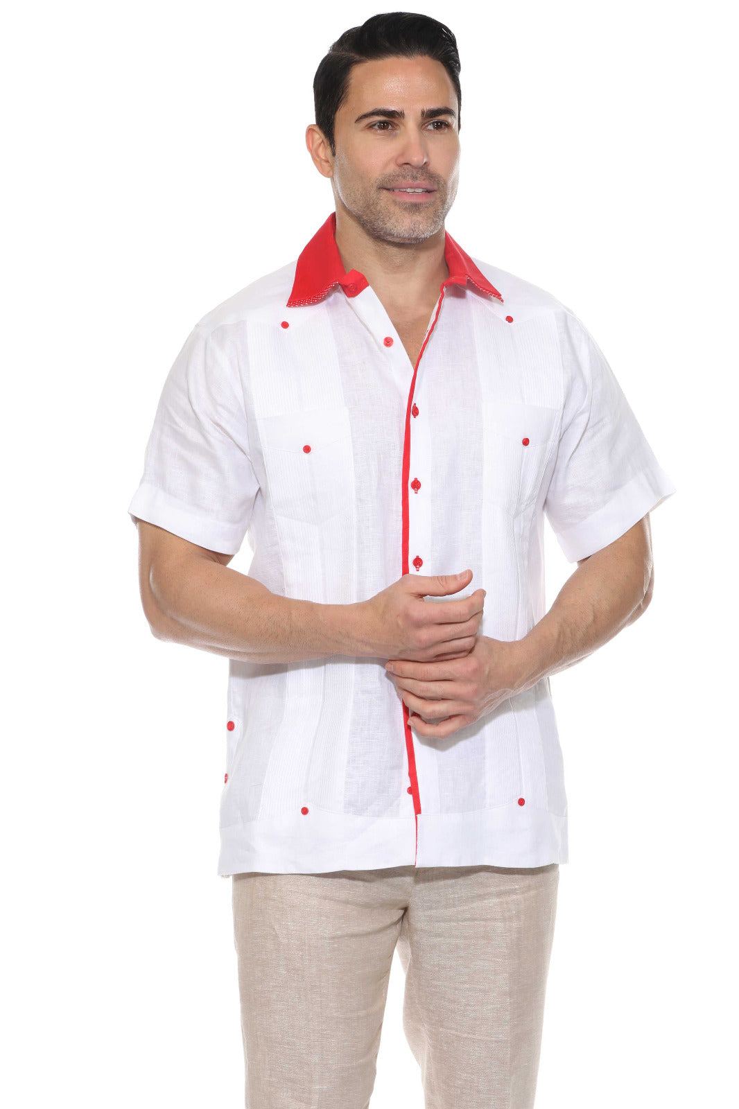 Mojito Men's 100% Linen Guayabera Chacabana Shirt Short Sleeve with Print Trim Accent