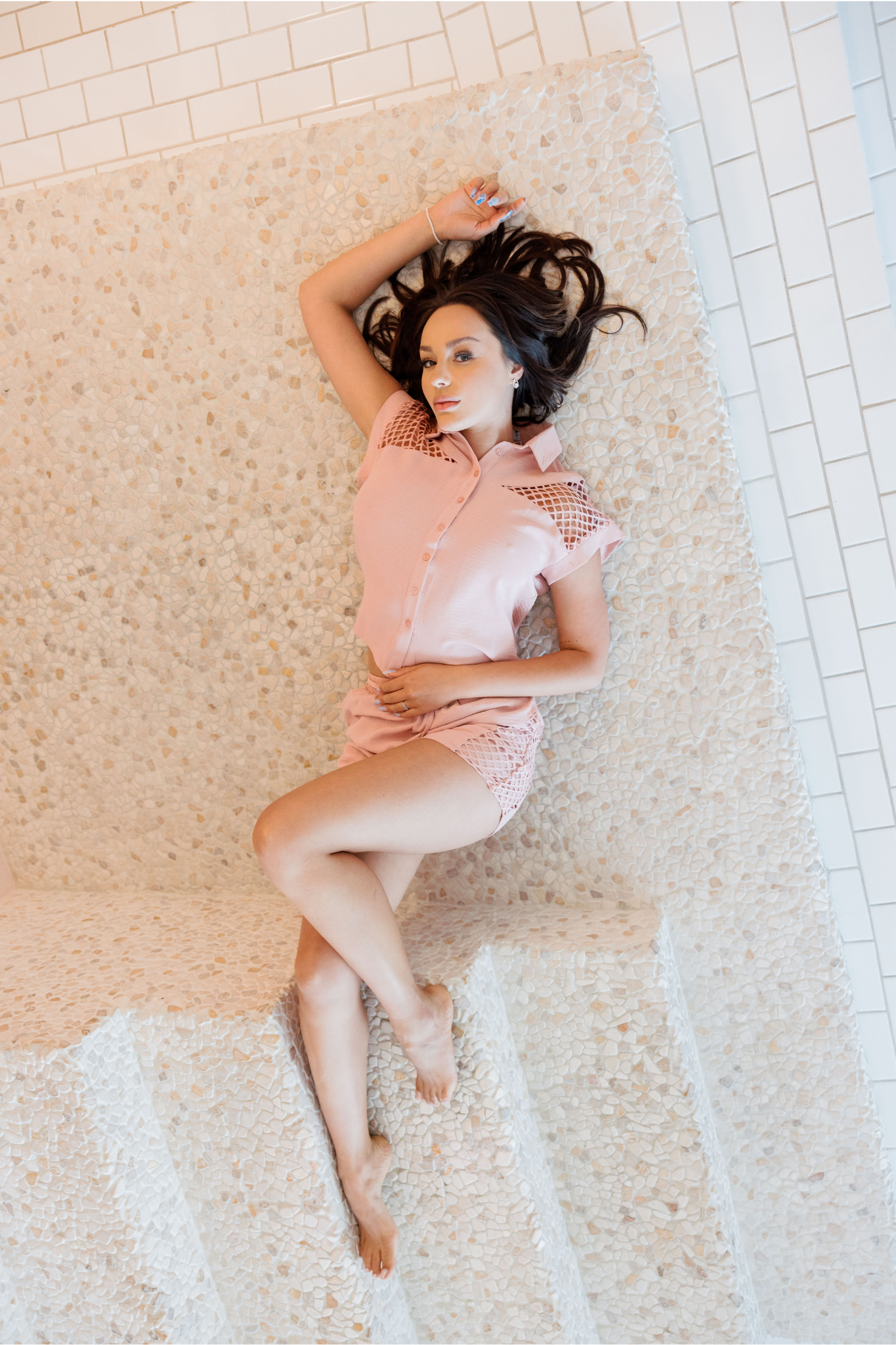 Women's Casual Resort Wear Cut Out Design Button Down Short Sleeve Top