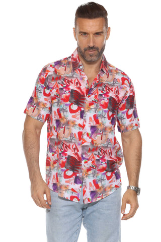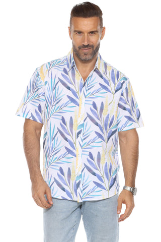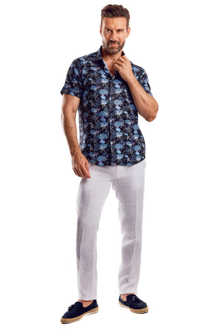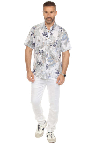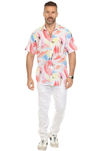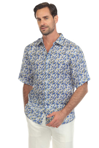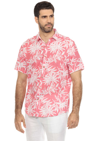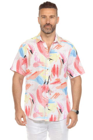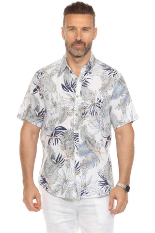 Mojito Men's 100% Linen Short Sleeve Abstract Bloom Print Shirt