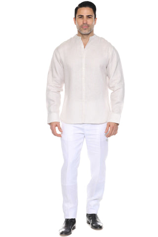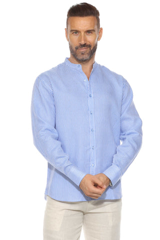 Mojito Men's Pinstripe Mandarin Collar Shirt 100% Linen Long Sleeve Button Down