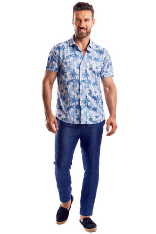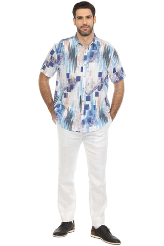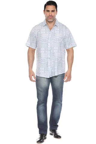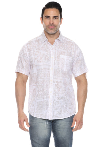 Mojito Men's Casual Print 100% Linen Shirt Short Sleeve Button Down