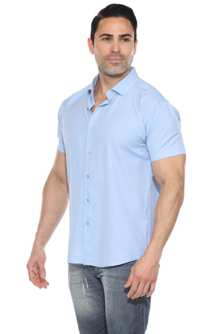 Casual Dress Shirt Solid Color 4 Way Stretch Short Sleeve