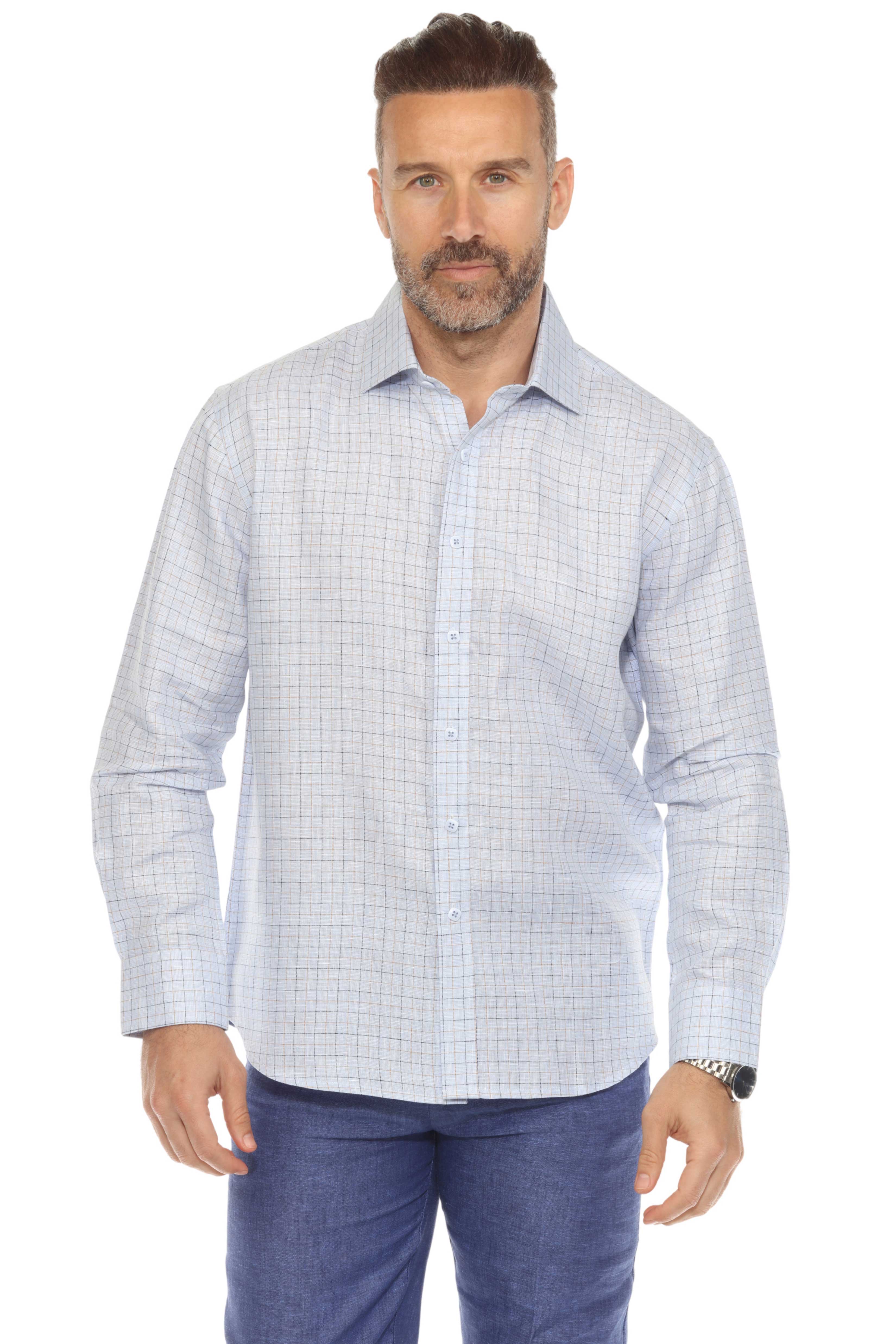 Stay cool, sharp, and effortlessly stylish with this premium 100% Linen shirt. Designed for comfort and breathability, the light blue base is accented with fine checkered print, offering a timeless, versatile look ideal for warm-weather wear or upscale casual dressing.