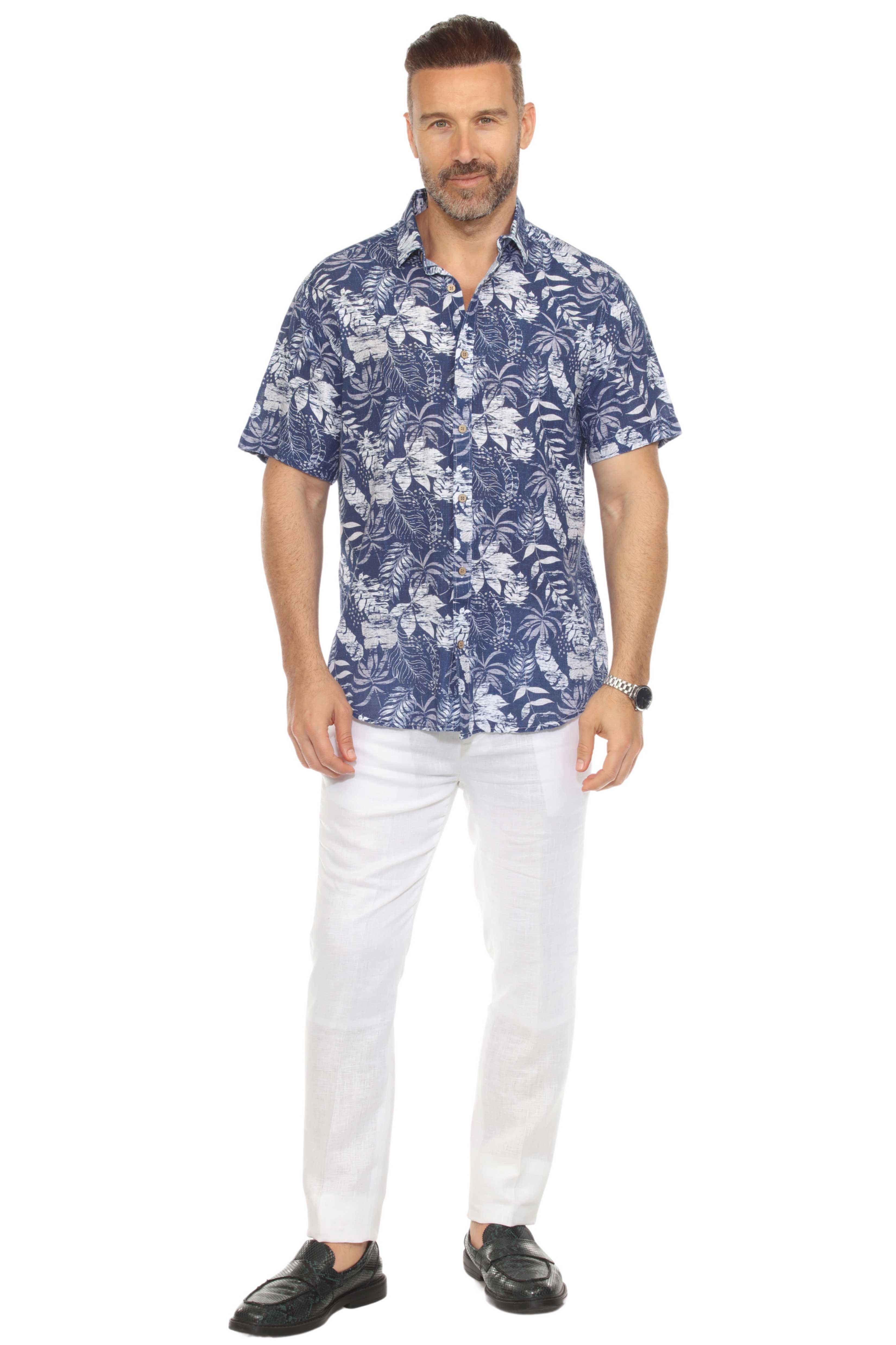 Men's Resort Style Casual Linen Blend Tropical Print Shirt