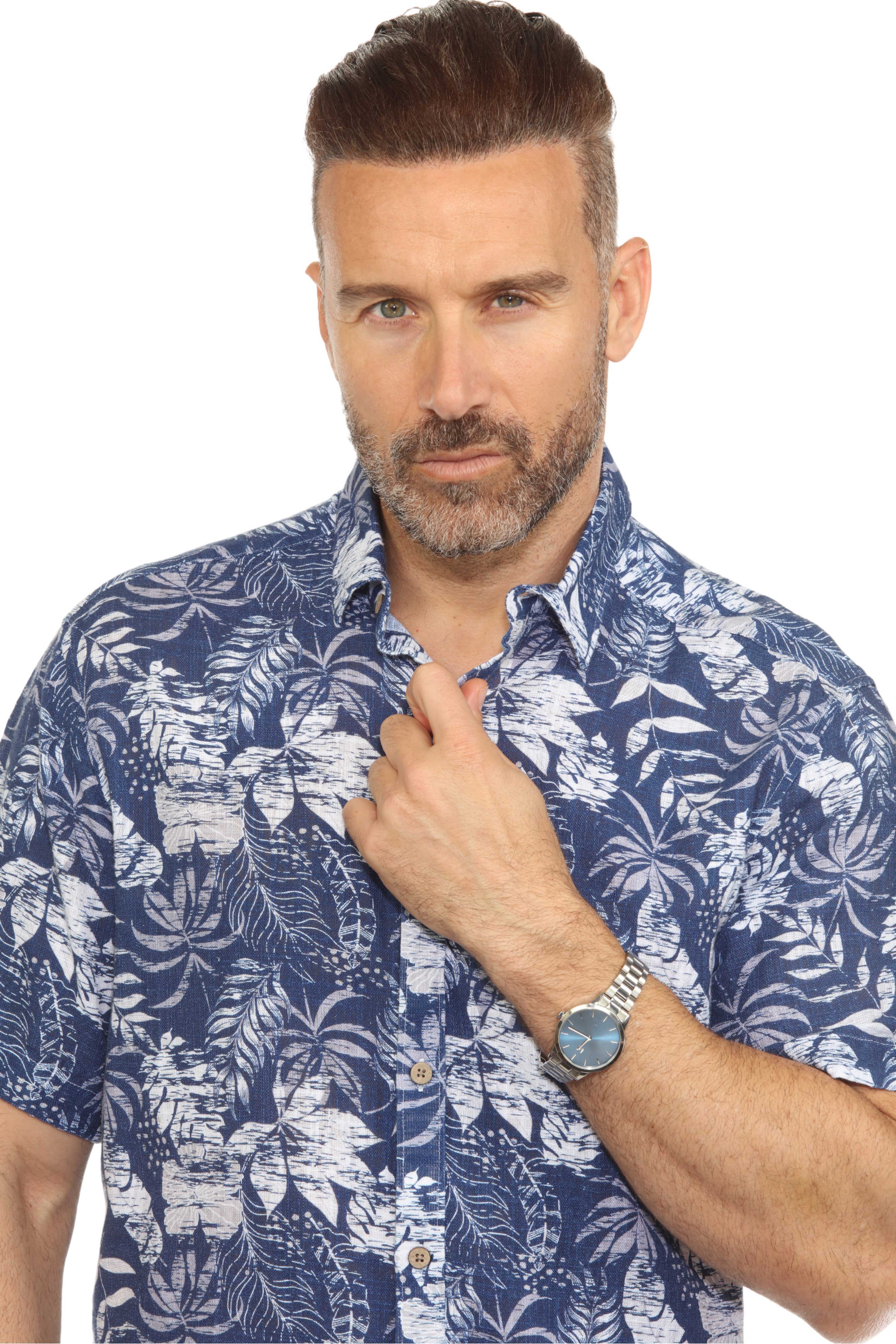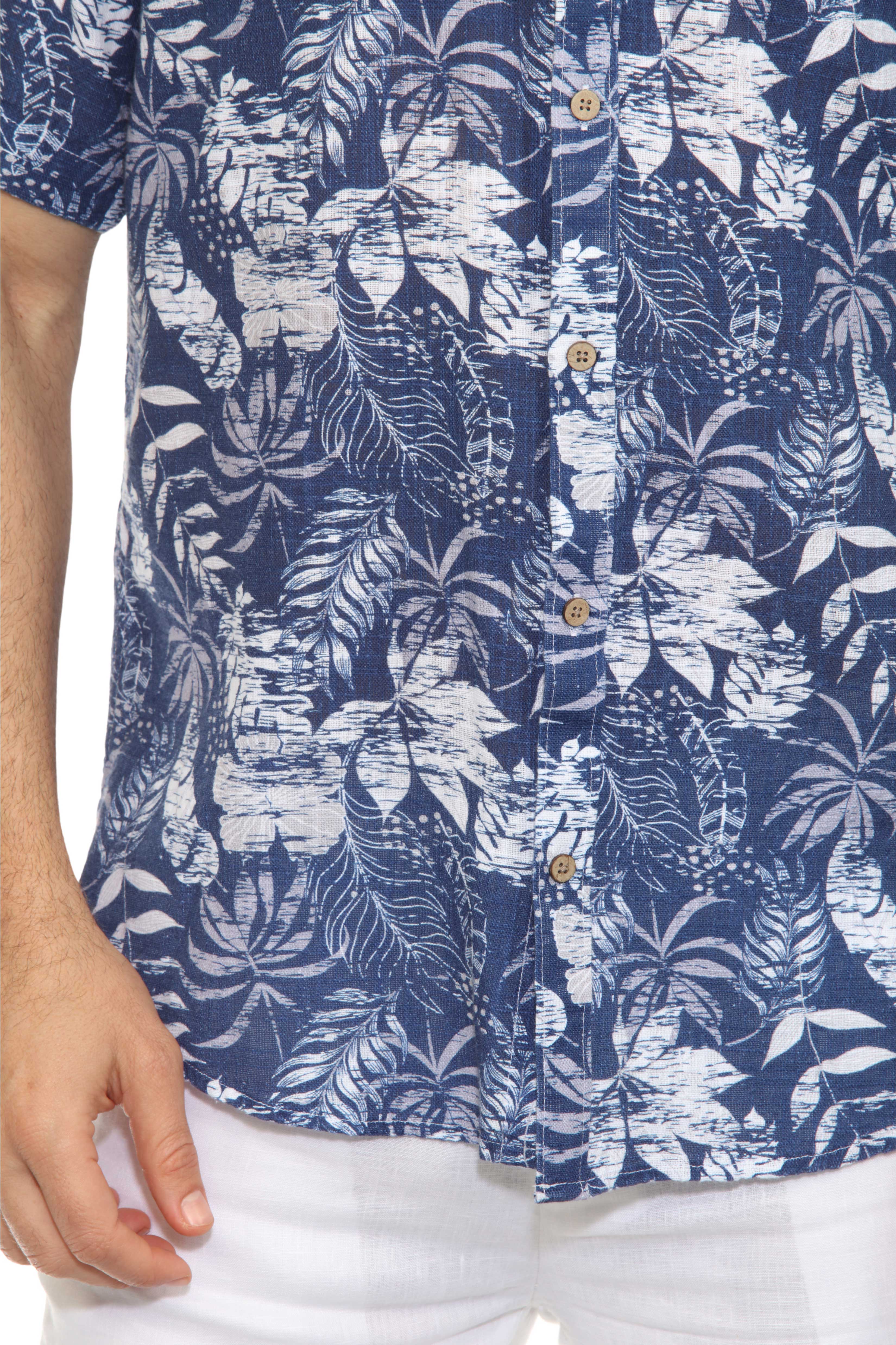 Elevate your resort style with this short sleeve button-up crafted from a lightweight cotton-linen blend. Featuring a crisp leaf print and a casual rolled sleeve, it's designed for effortless warm-weather refinement.