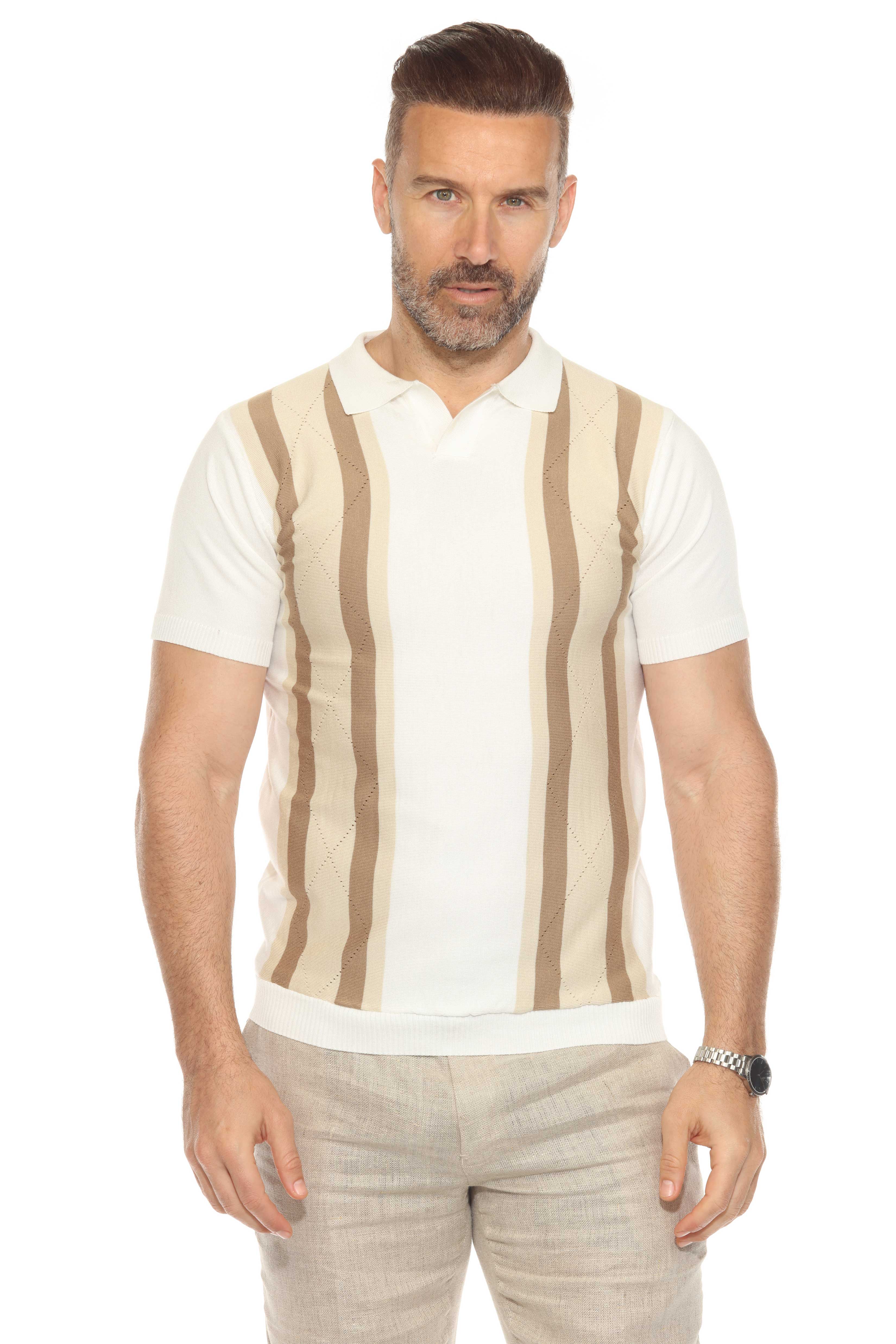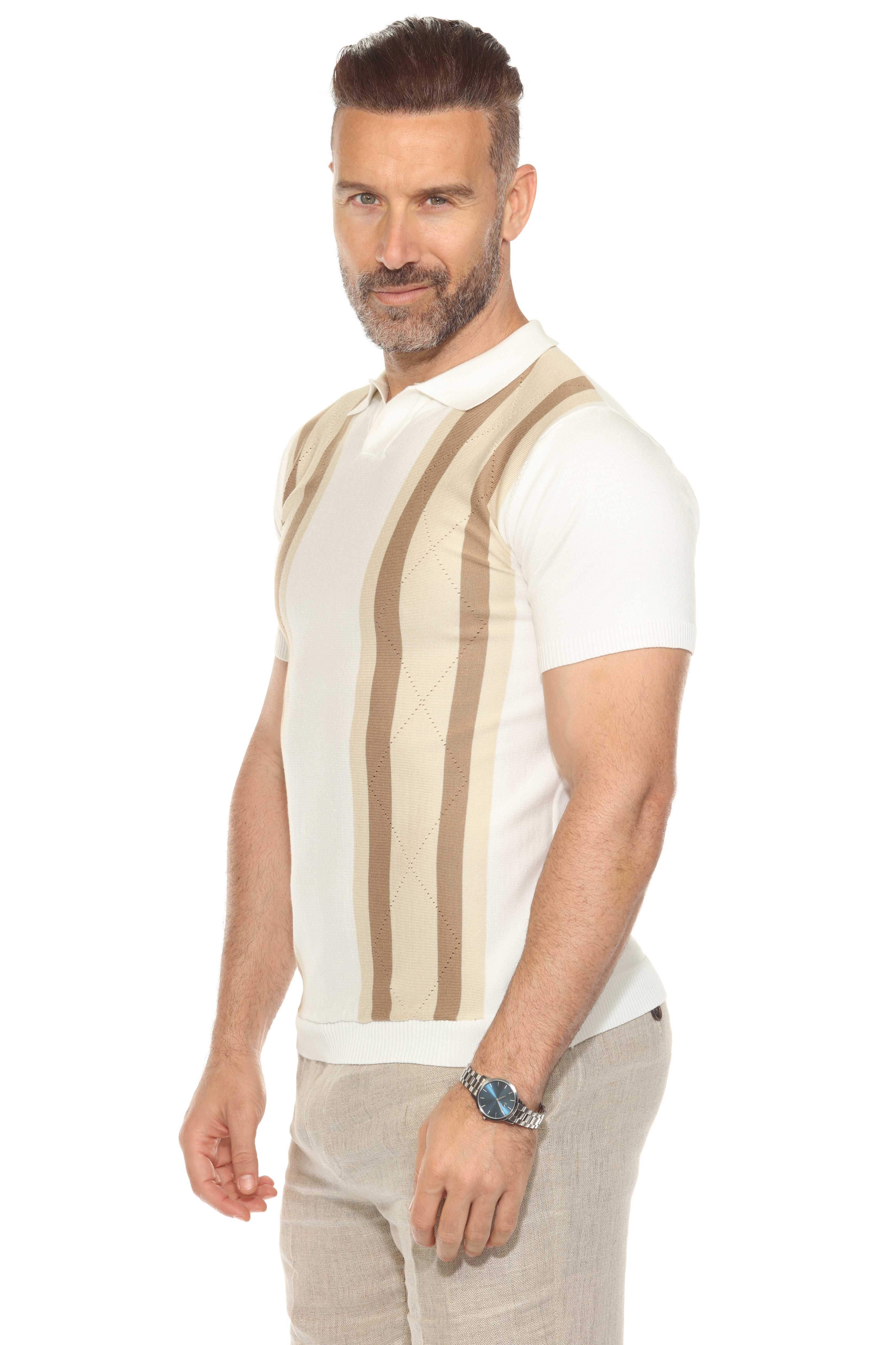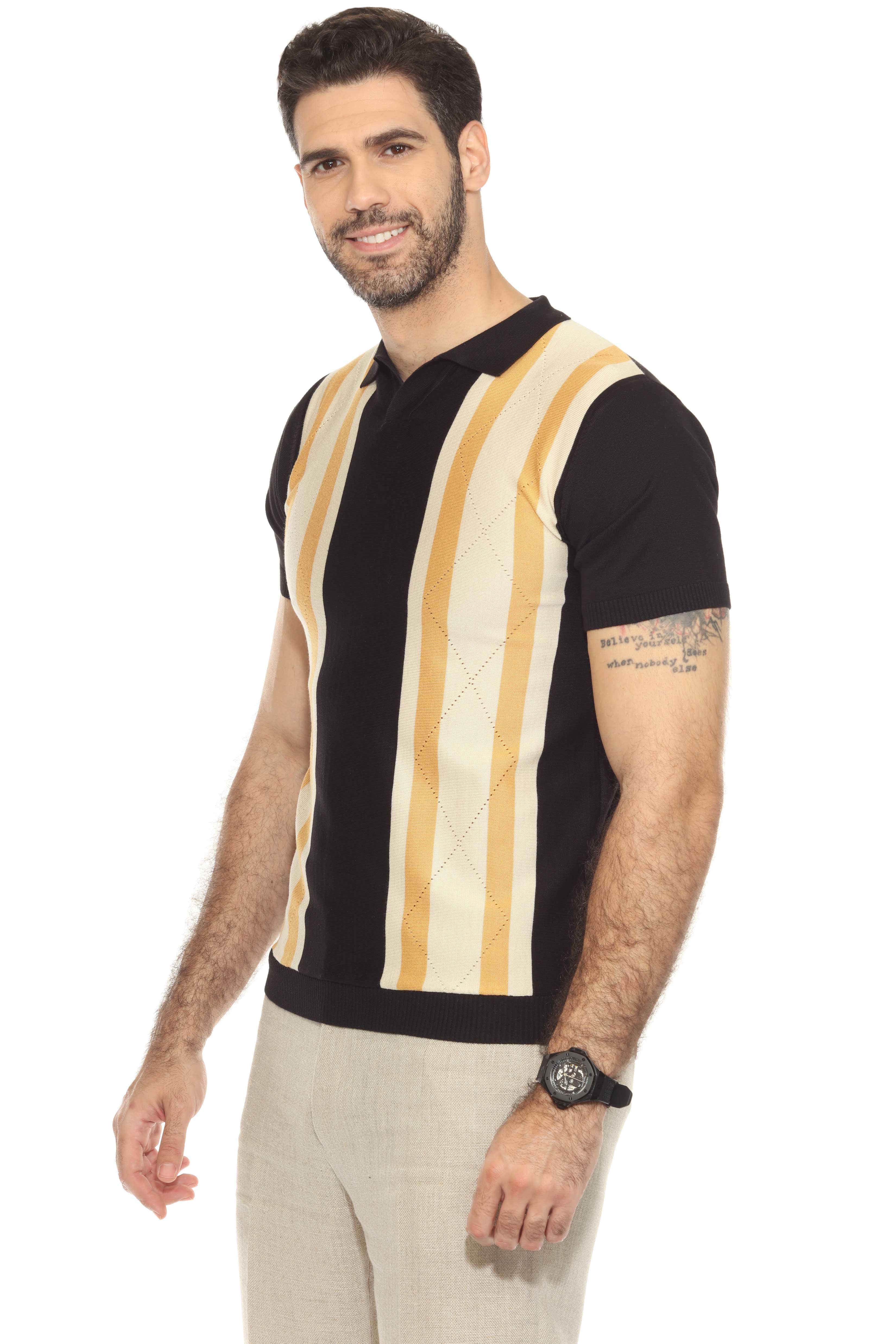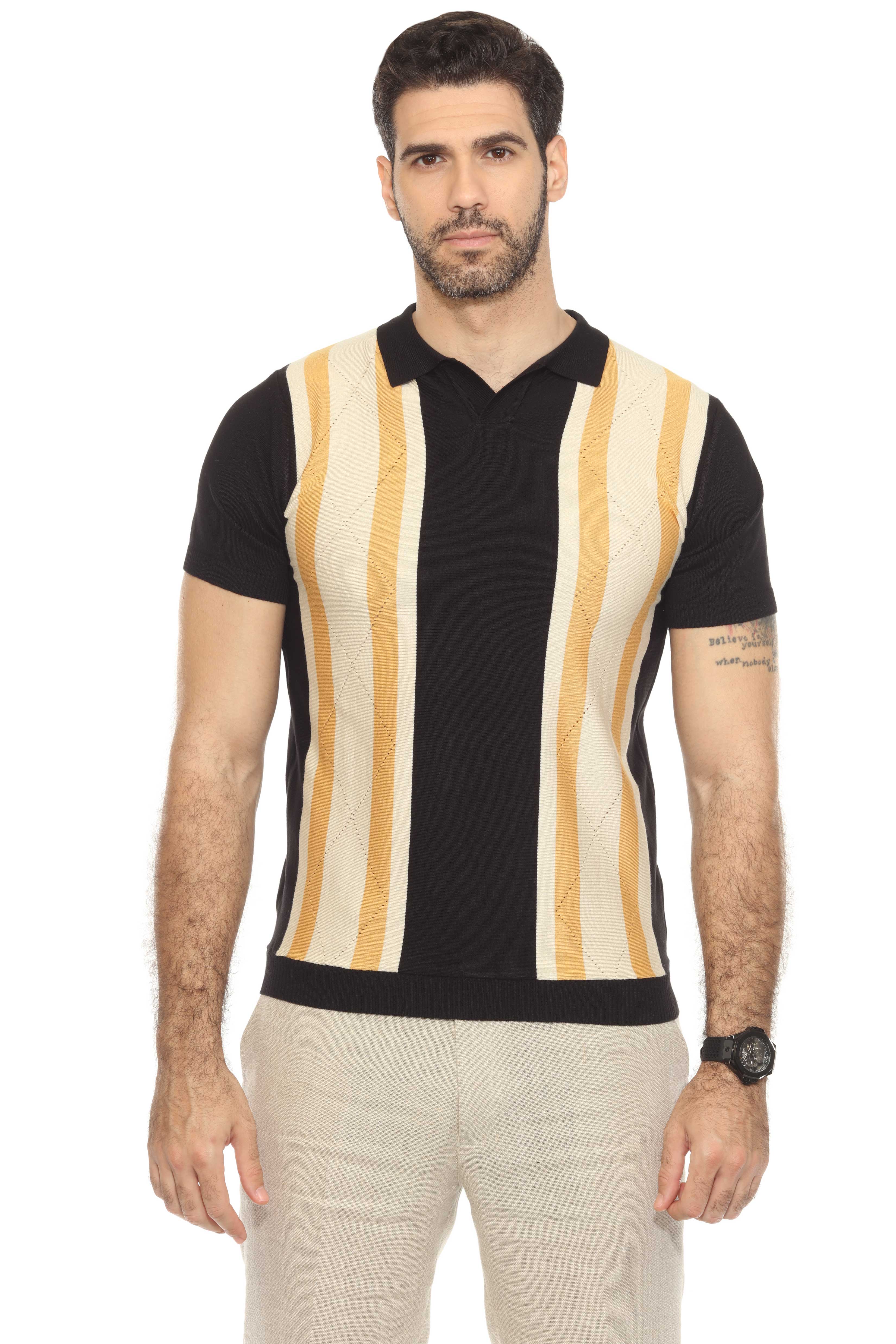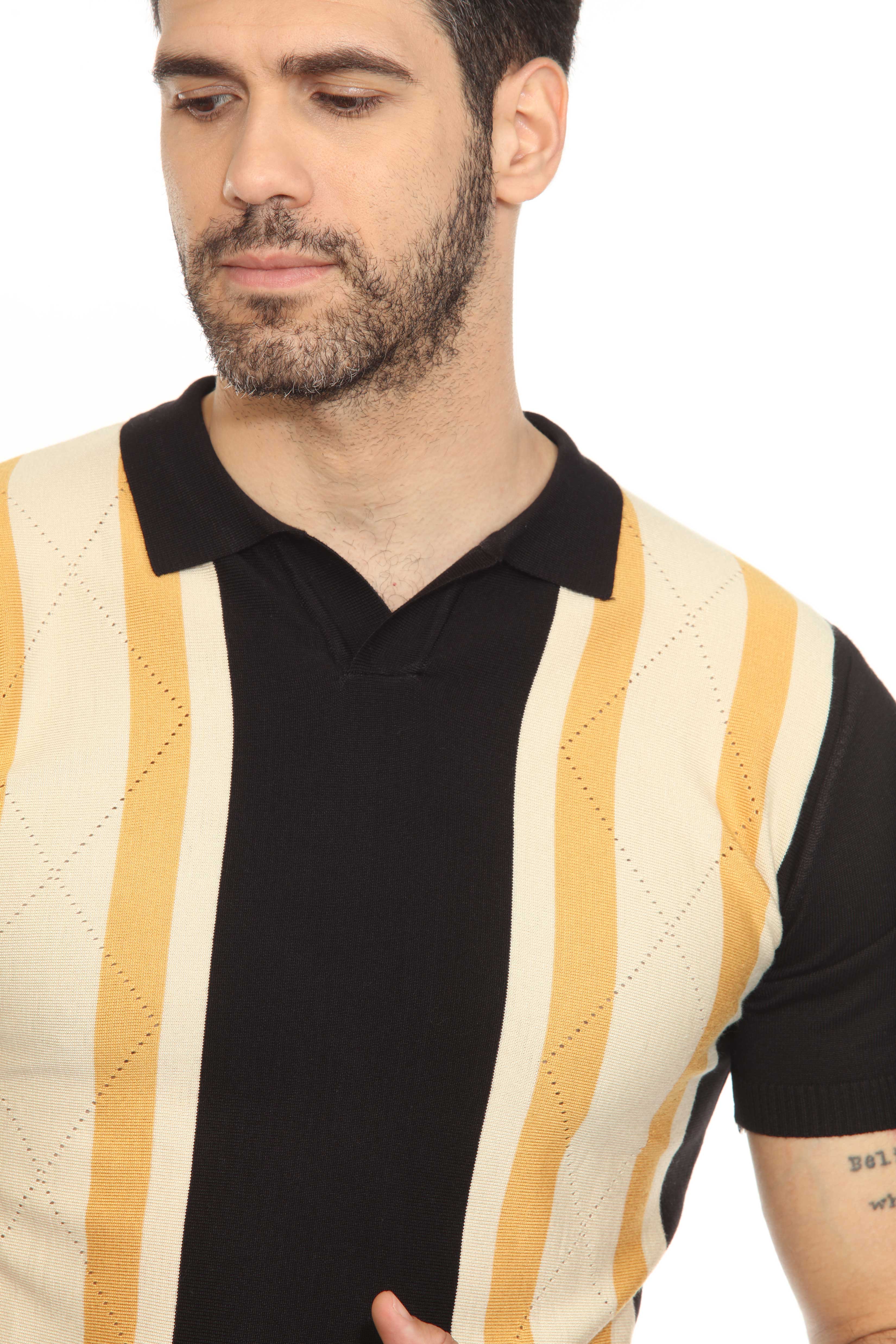 Mojito Mens Stylish Premium Knit Textured Polo Shirt with Color Stripe Pattern