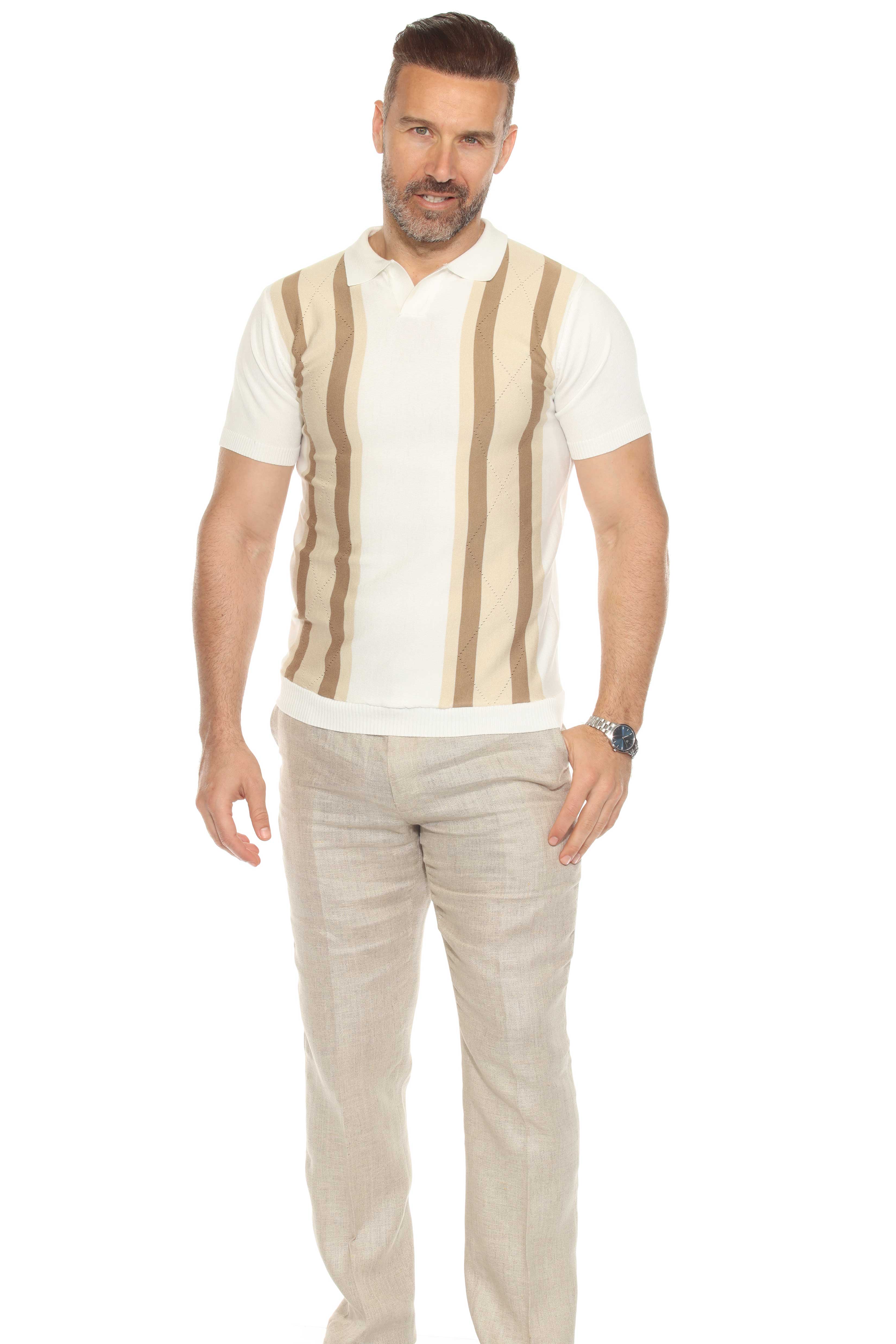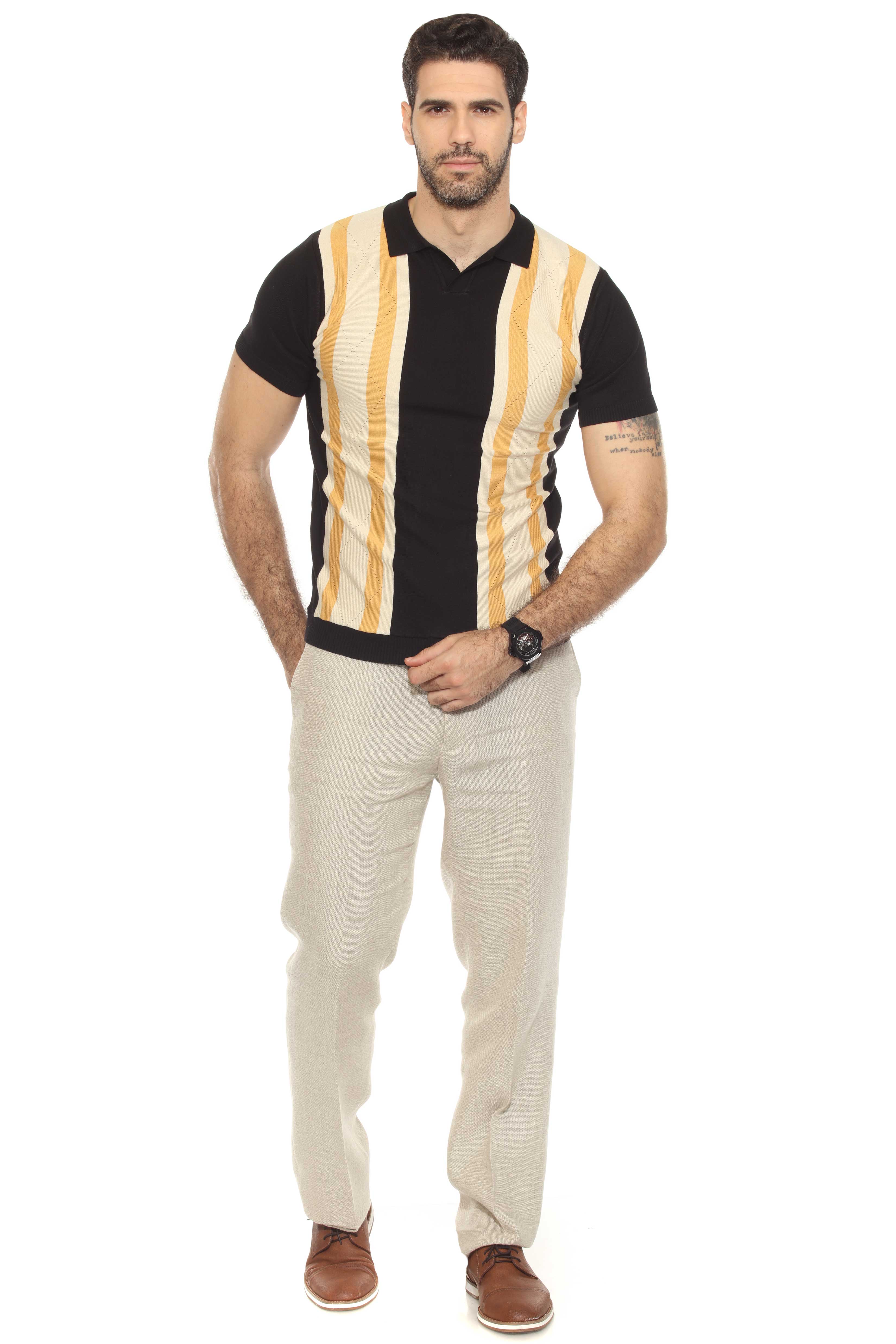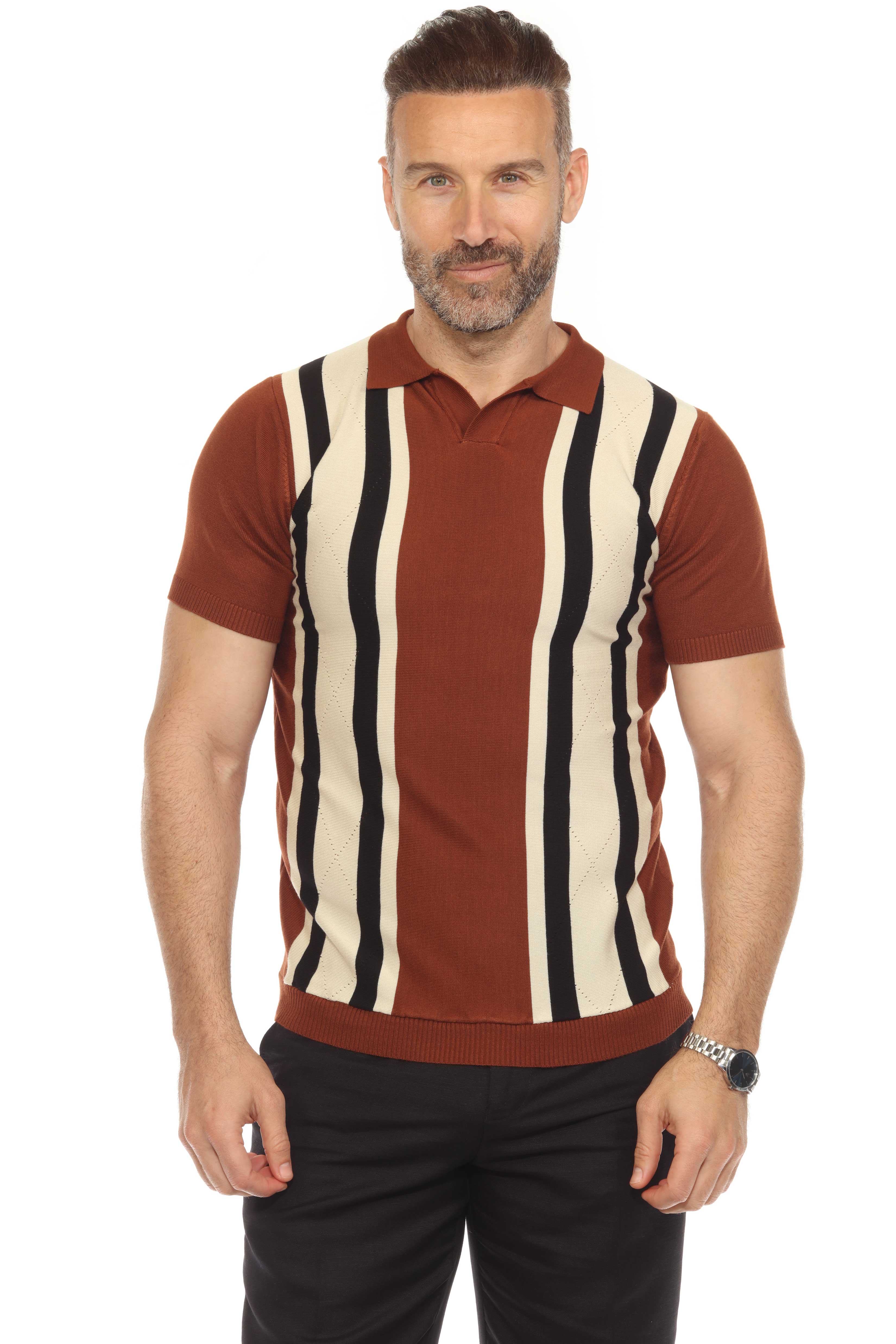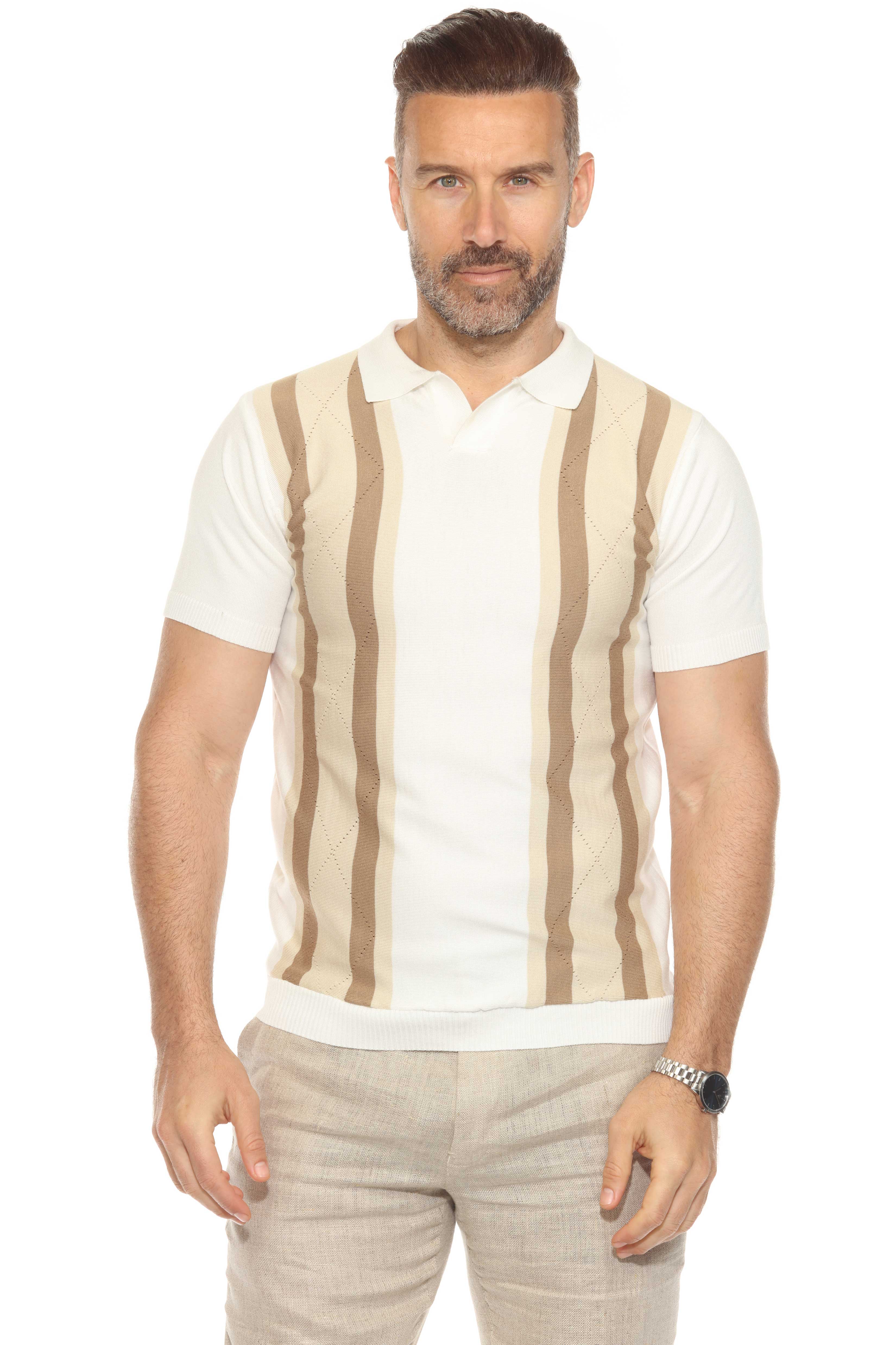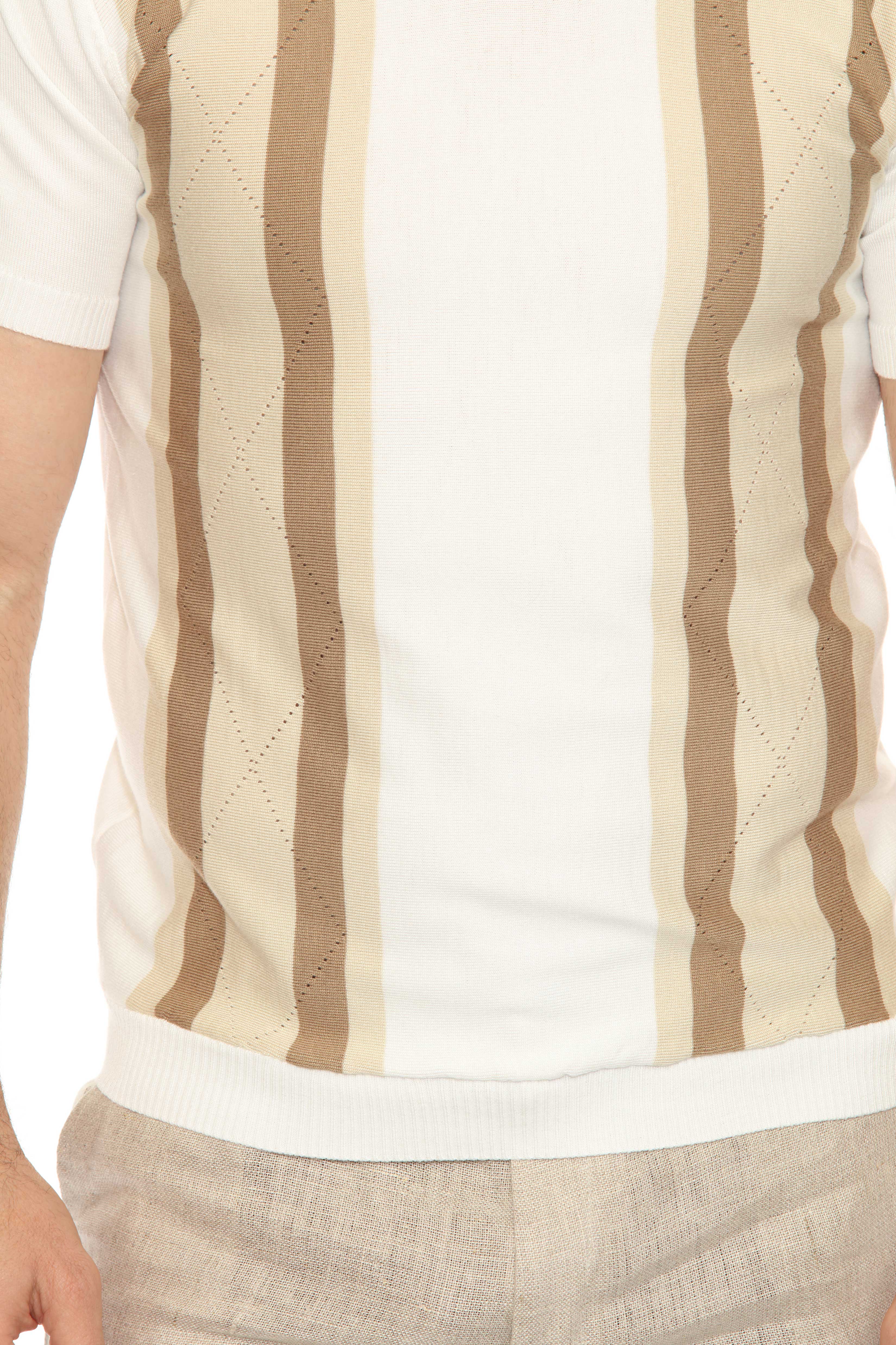 Mojito Mens Stylish Premium Knit Textured Polo Shirt with Color Stripe Pattern