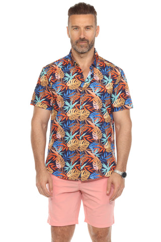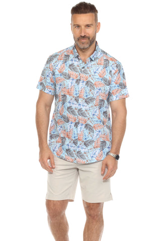 Mojito Lightweight Modern Island Leaf Pattern Print Stretch Shirt