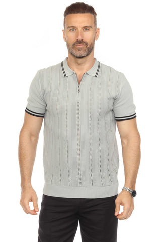 Mojito Mens Stylish Premium Knit Textured Polo Shirt with Zipper Closure