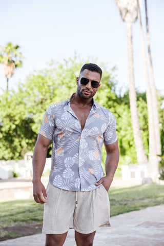 Mojito Men's Resort Style Casual Linen Blend Colorful Tropical Leaf Print Shirt