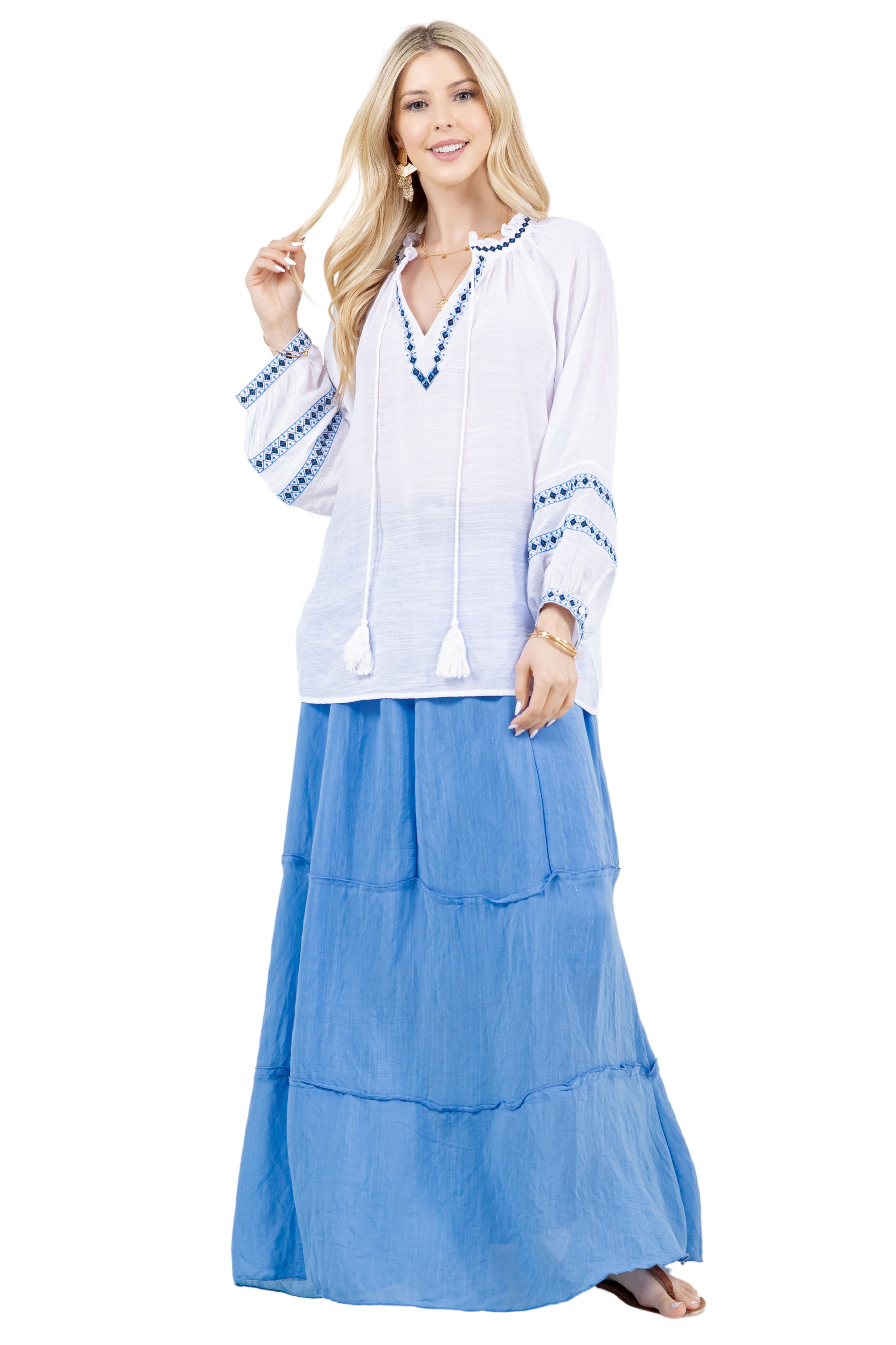 Elevate your casual wardrobe with this breezy bohemian-inspired blouse, crafted for softness and style. The rayon-poly blend ensures a breathable, airy feel with an elegant drape, perfect for everyday wear or dressed-up occasions.